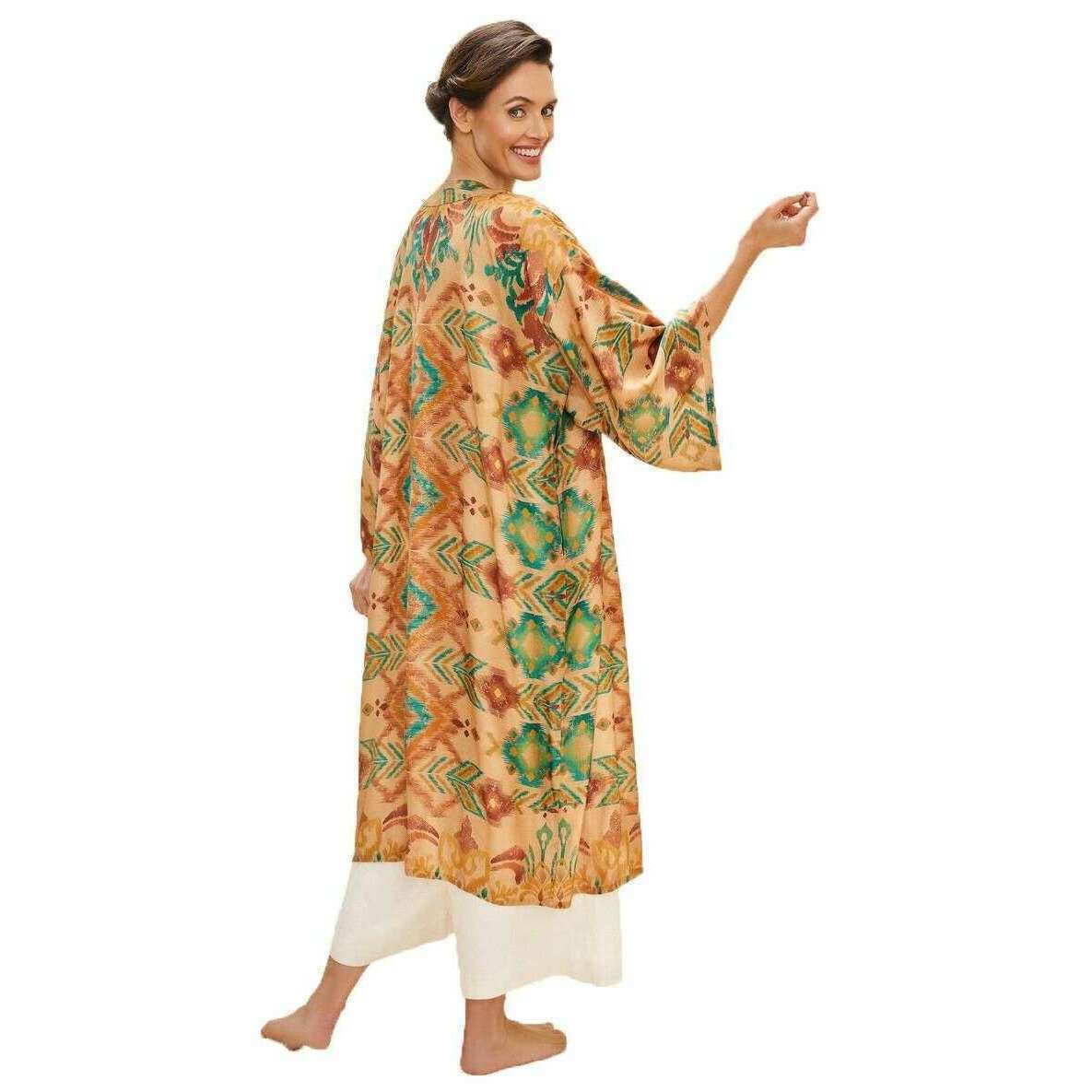Powder Warm Ikat Kimono Robe - Crème