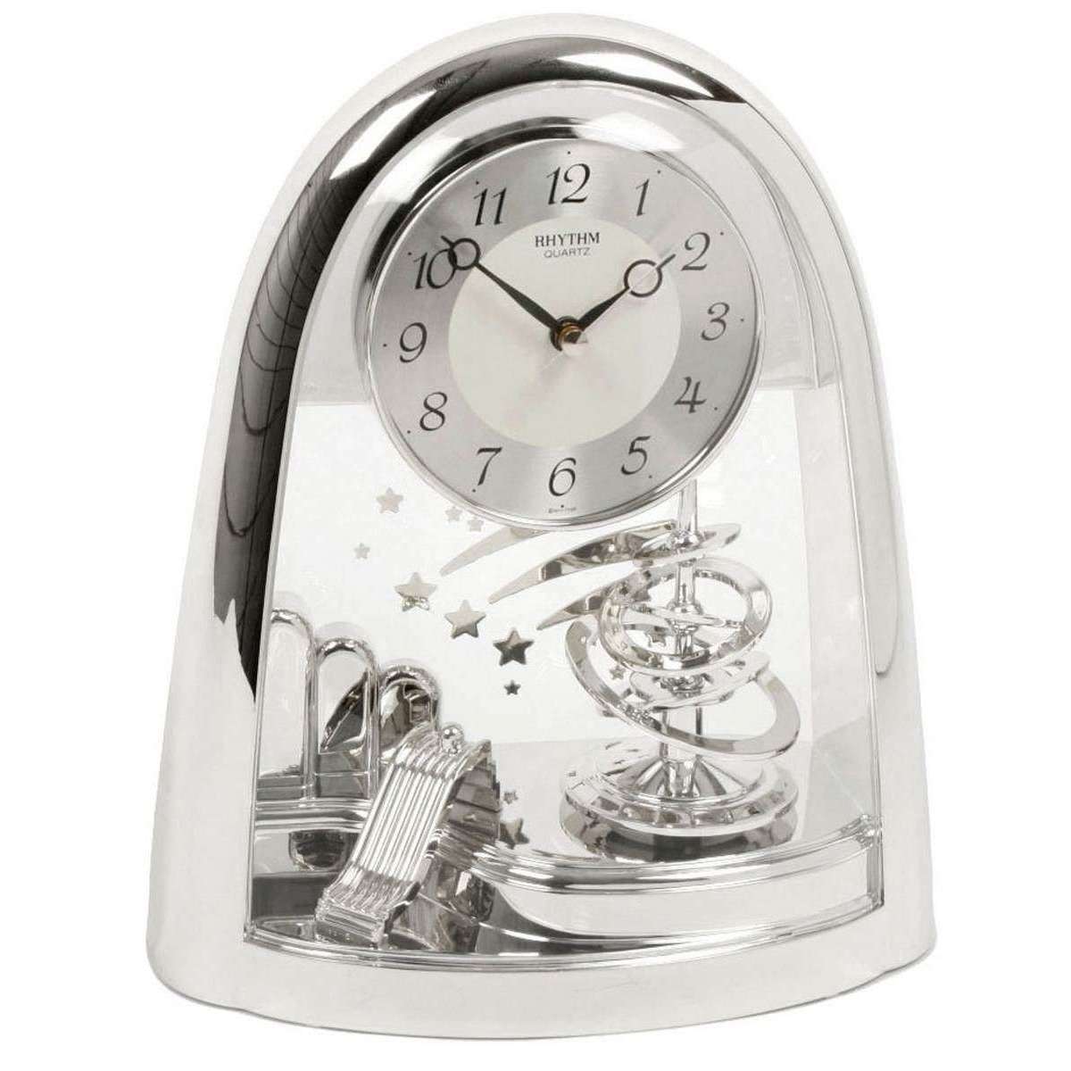 Rythme Horloge de manteau de pendule à sproal arqué en rythme - Argent