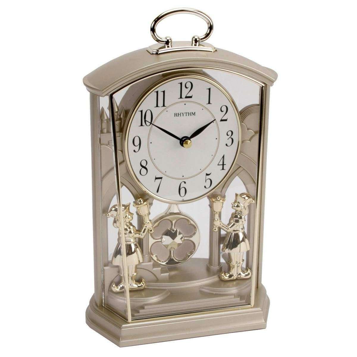 Présenté par le rythme de la marque, cette horloge de manteau en chariot à deux tons unisexe est fabriquée en plastique. Il mesure 23 cm (hauteur) x 14 cm (largeur) x 8,5 cm (profondeur). Toutes les horloges sont complètes avec un emballage de rythme. L'horloge du manteau en chariot à deux tons - Gold présente un design orné avec le pendule «Comfort Swing» silencieux de Rhythm et les petits pieds de placement de l'elfin de chaque côté. L'horloge dispose d'un mouvement de quartz avec un cadran arabe et des mains d'épée noires. Ce serait le plus parfait pour n'importe quelle pièce de manteau. Nécessite 2 piles x aa.