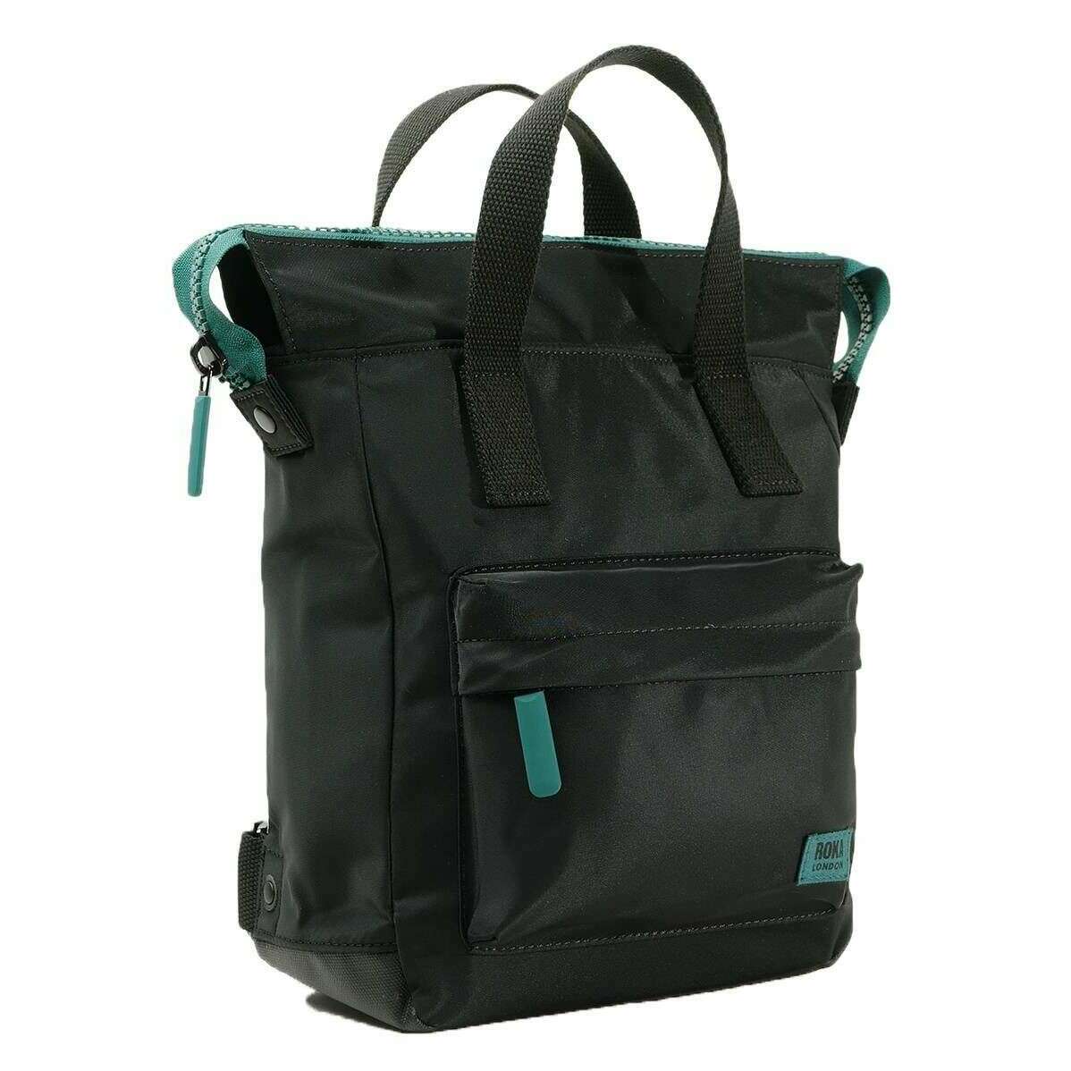Roka Bantry B Small All Black Recycled Nylon Backpack - Black/Teal