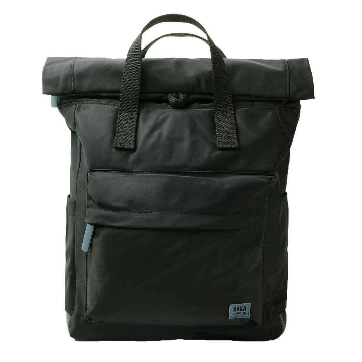Roka Canfield B Medium All Black Recycled Nylon Backpack - Black/Airforce Grey