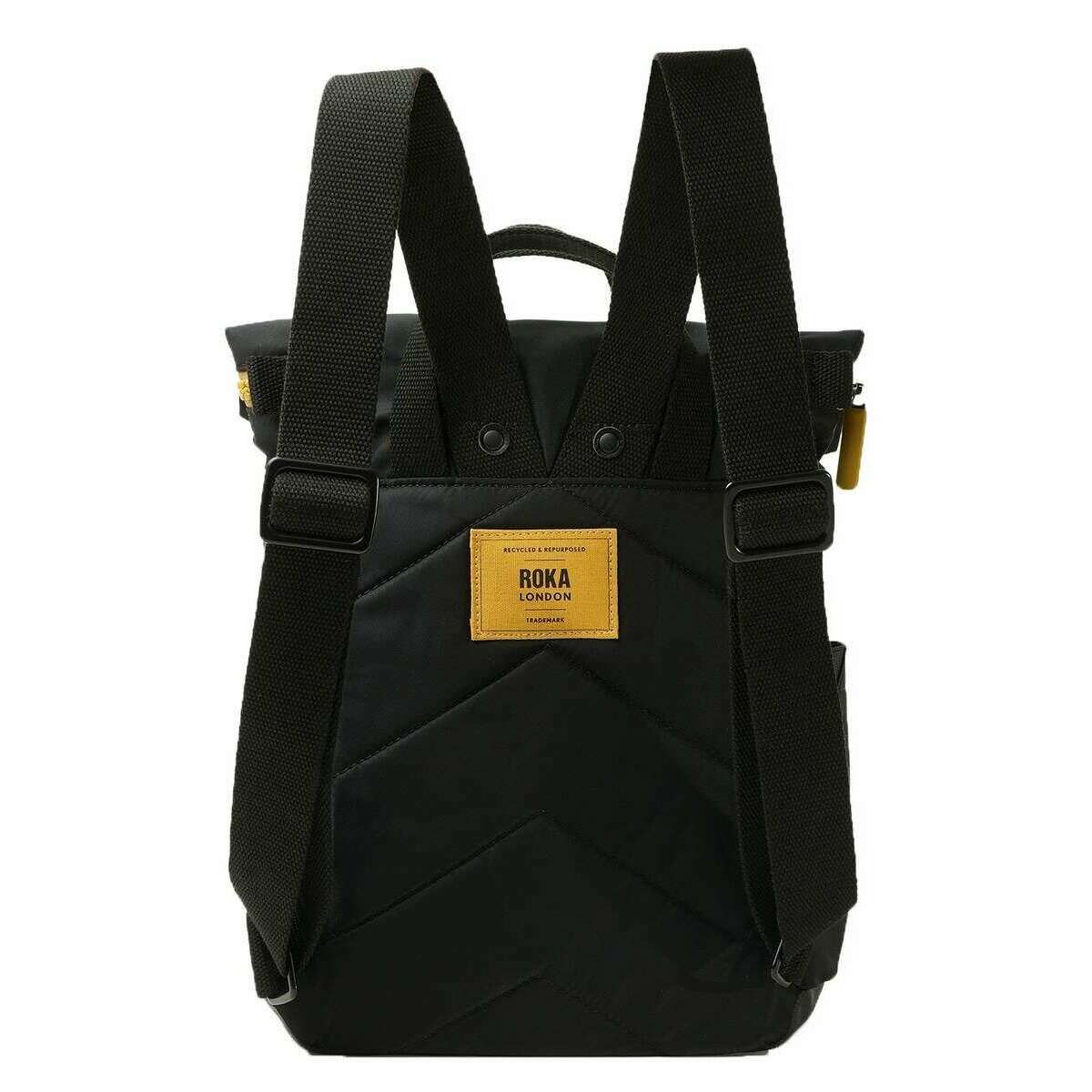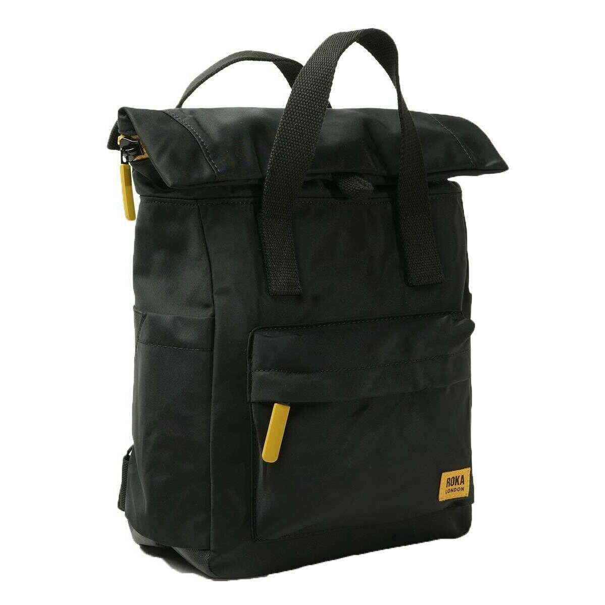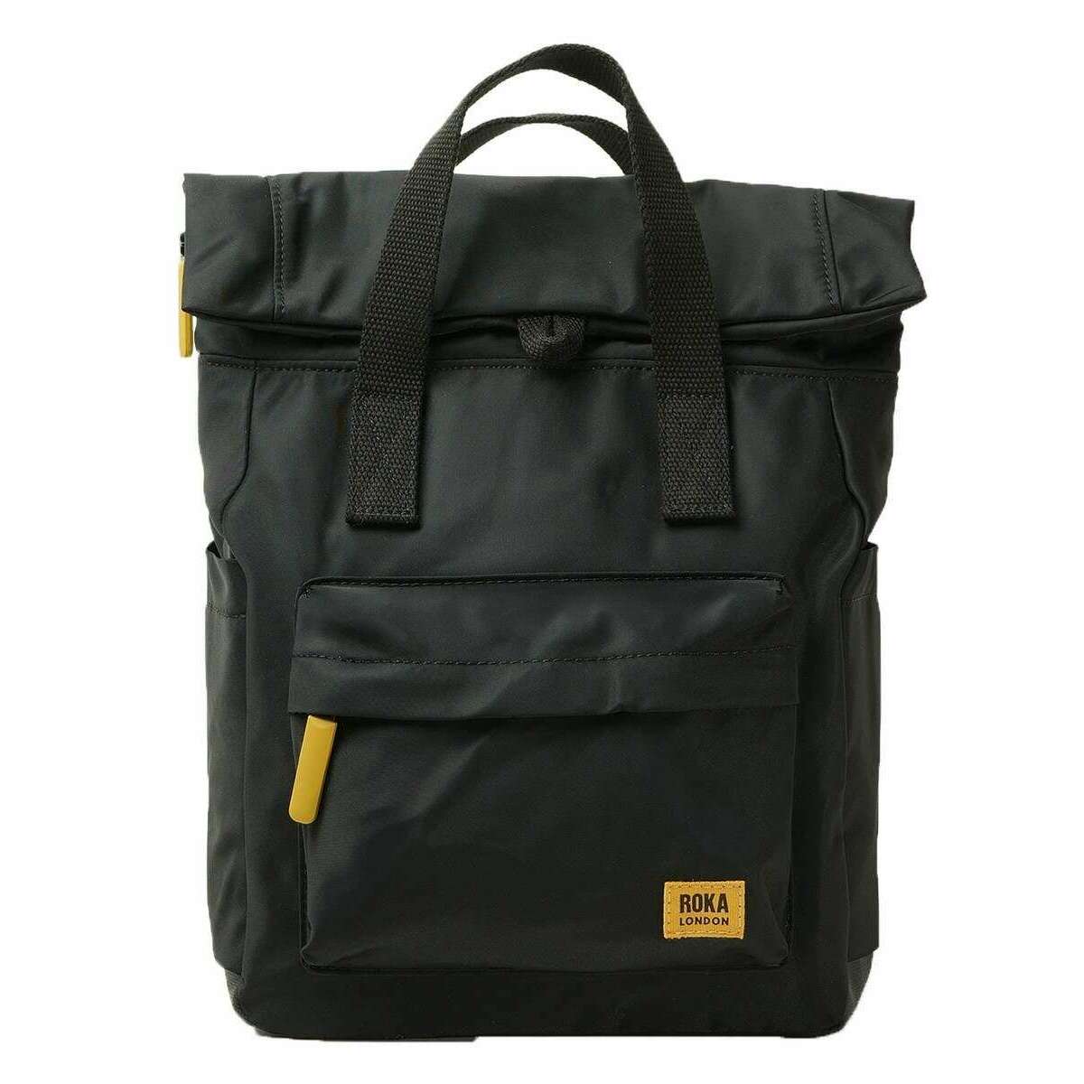 Roka Canfield B Small All Black Recycled Nylon Backpack - Black/Corn Yellow