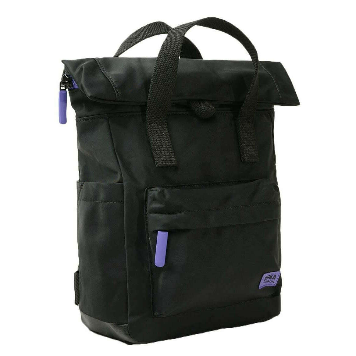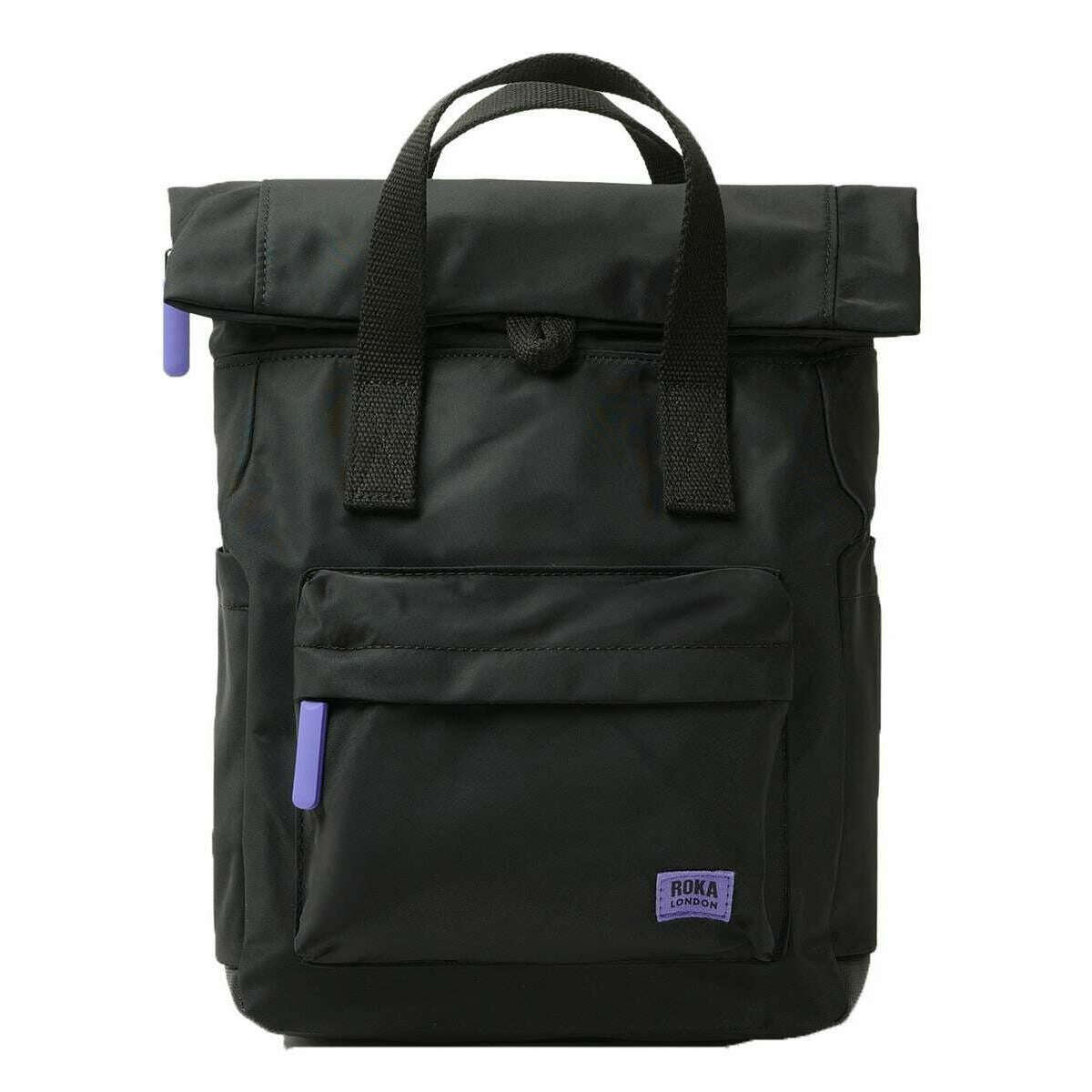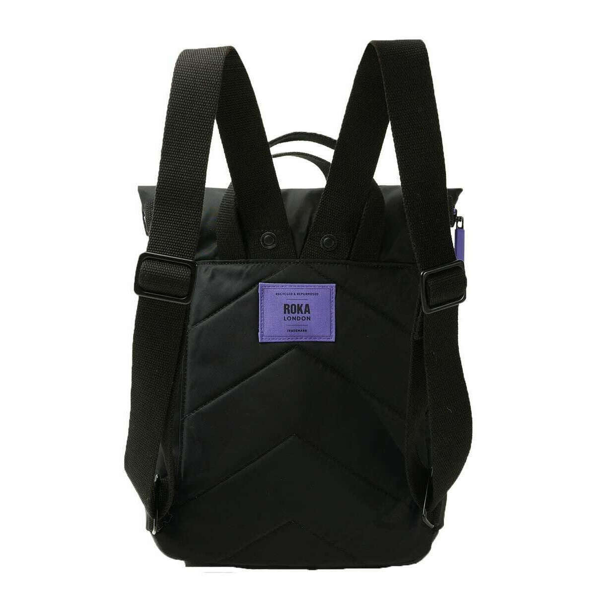 Roka Canfield B Small All Black Recycled Nylon Backpack - Black/Simple Purple