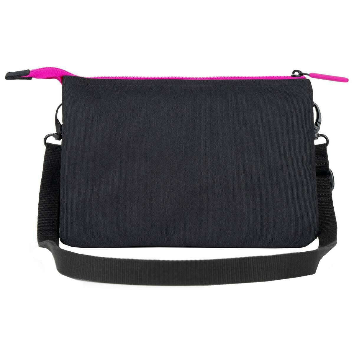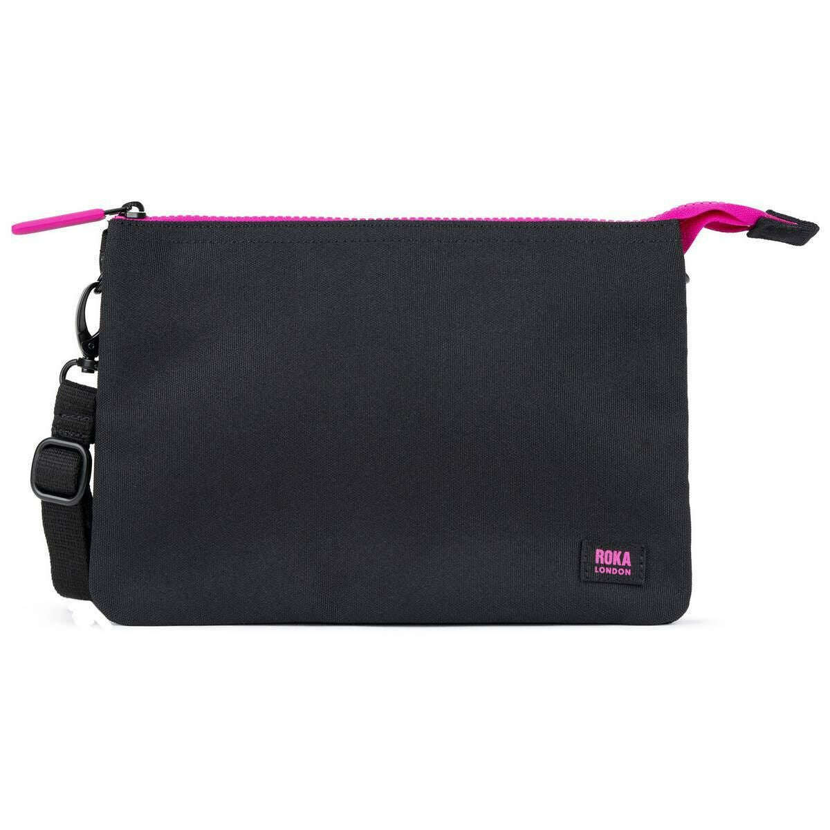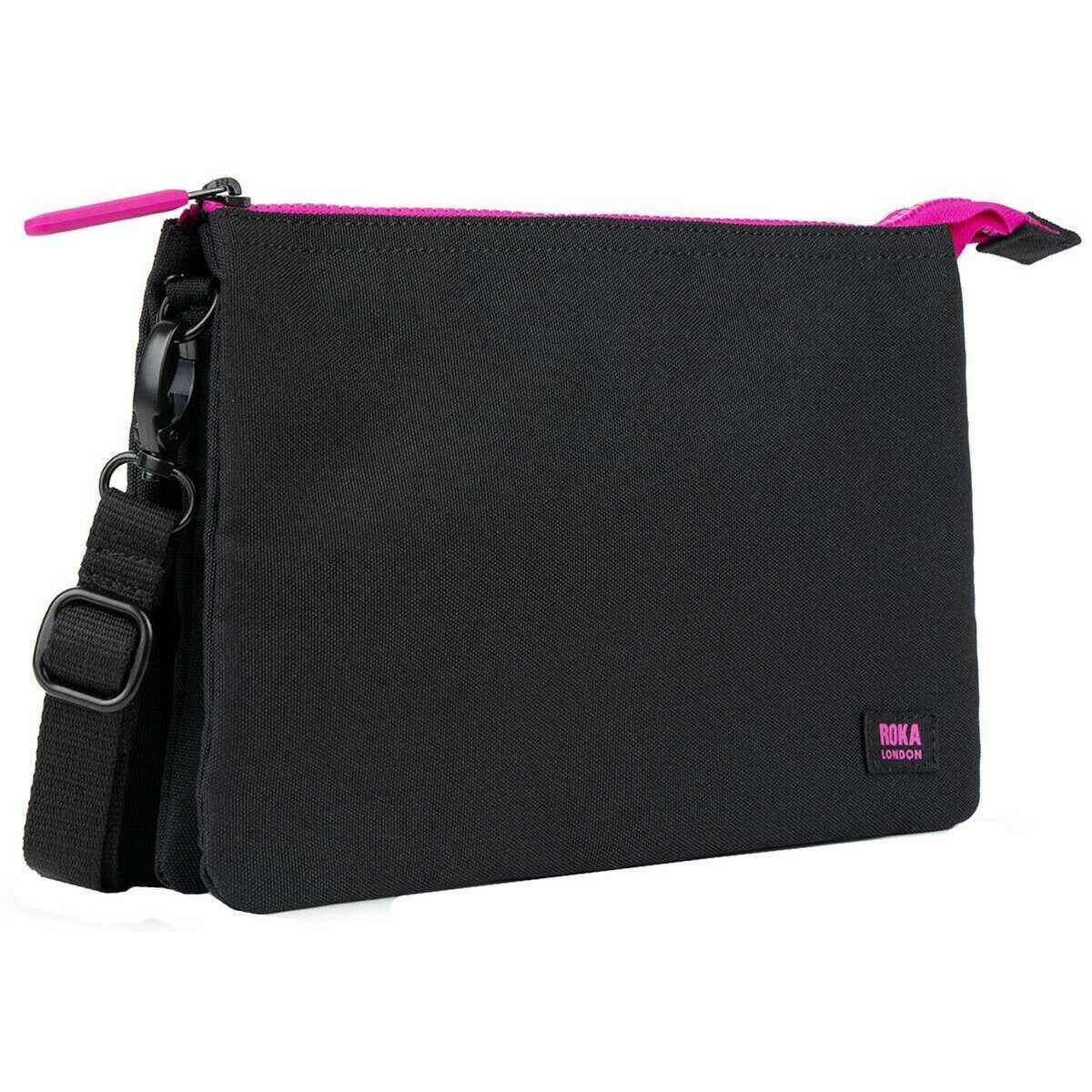 Roka Carnaby XL All Black Pink Label Recycled Canvas Crossbody Bag - Black/Pink