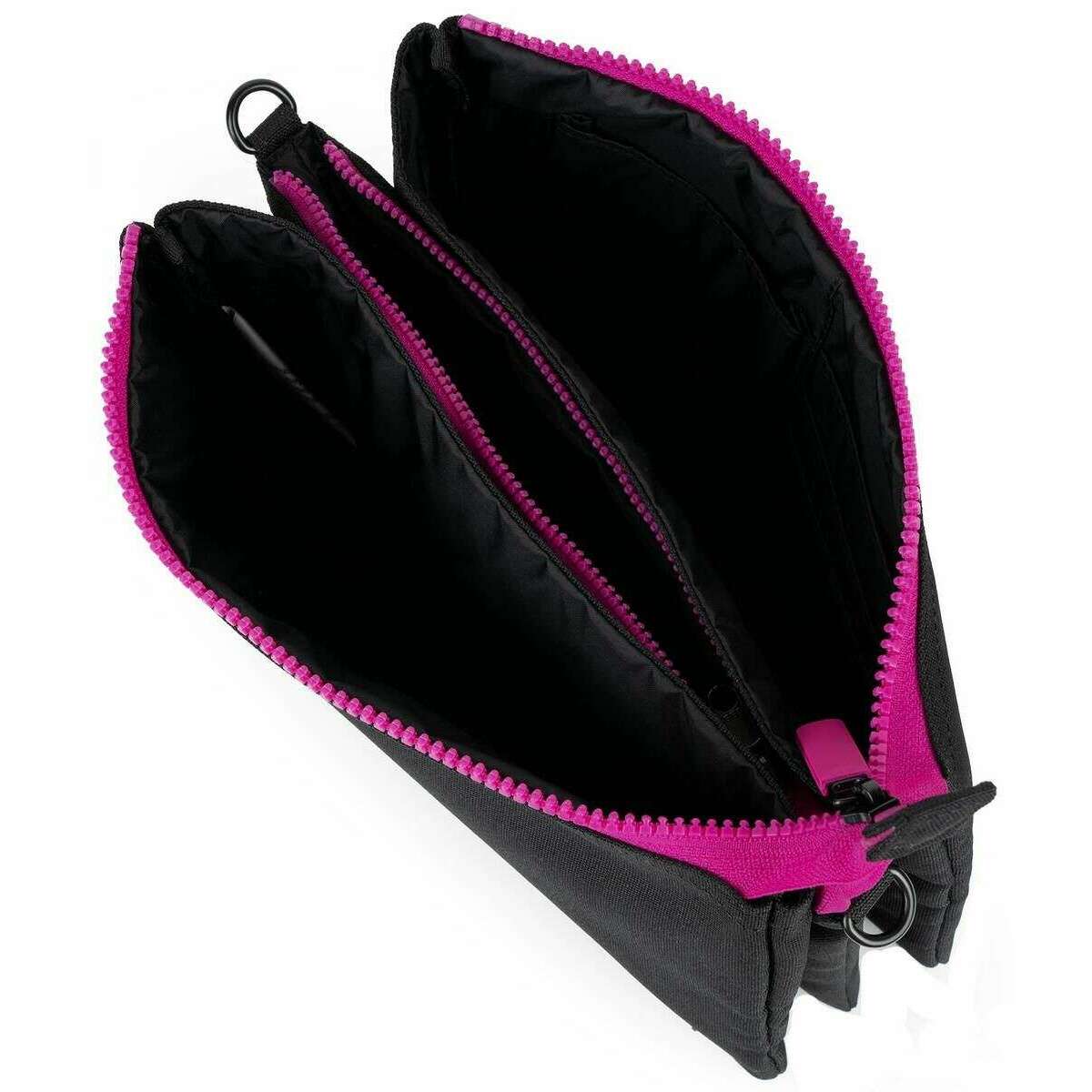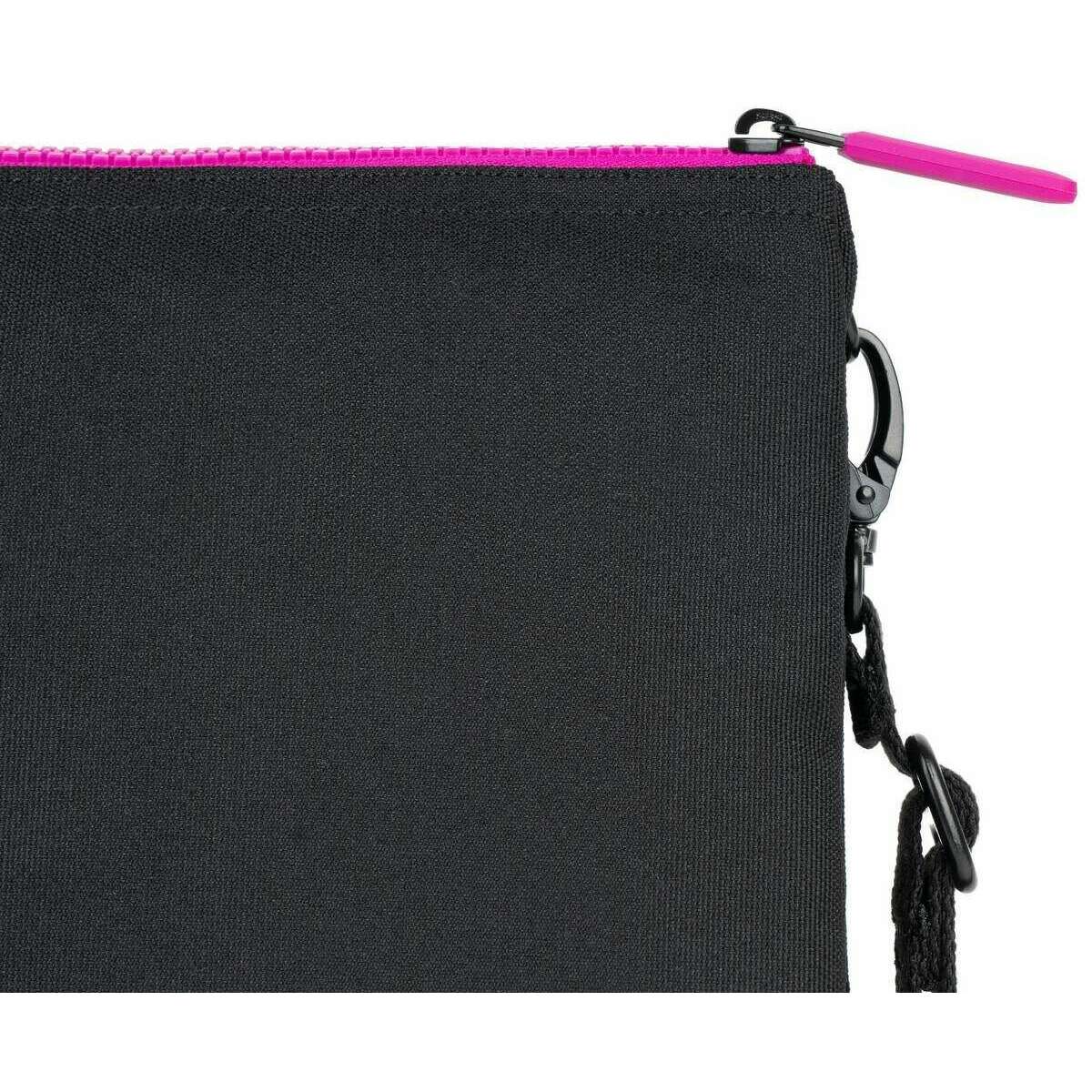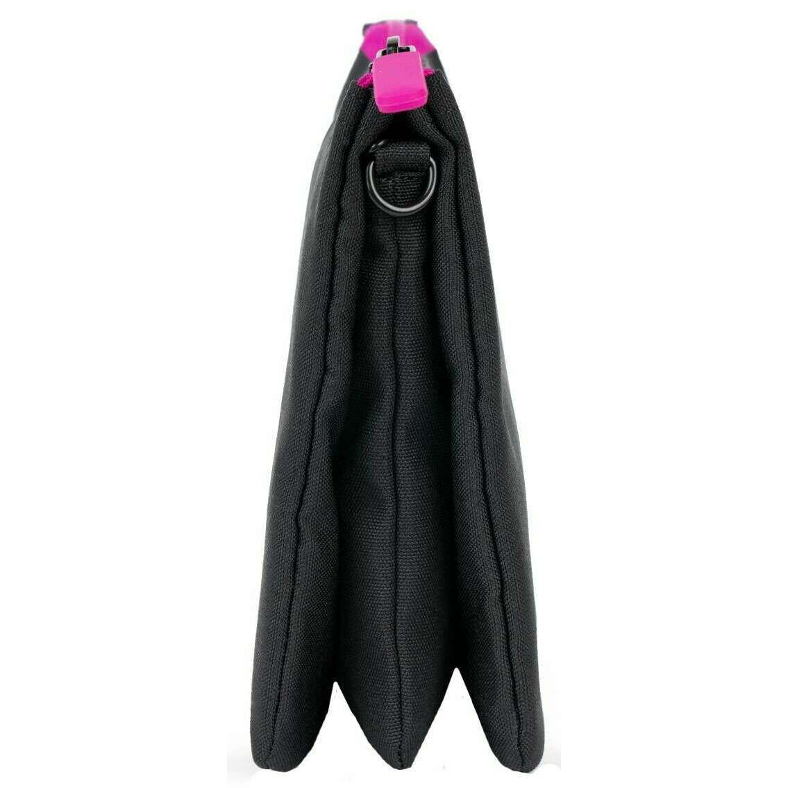 Roka Carnaby XL All Black Pink Label Recycled Canvas Crossbody Bag - Black/Pink