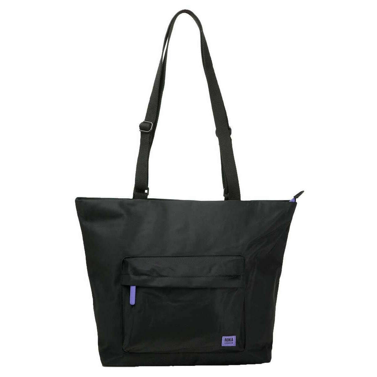 Roka Trafalgar B All Black Recycled Nylon Tote Bag - Black/Simple Purple