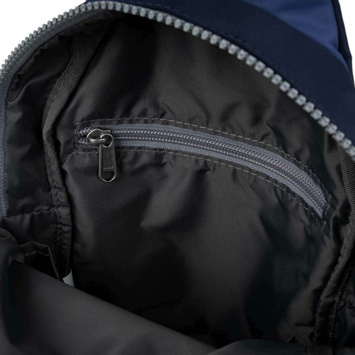 • Poche à fermeture éclair avant, sangle réglable, fermeture à glissière, poche à fermeture éclair intérieure, poche arrière secrète, recyclé