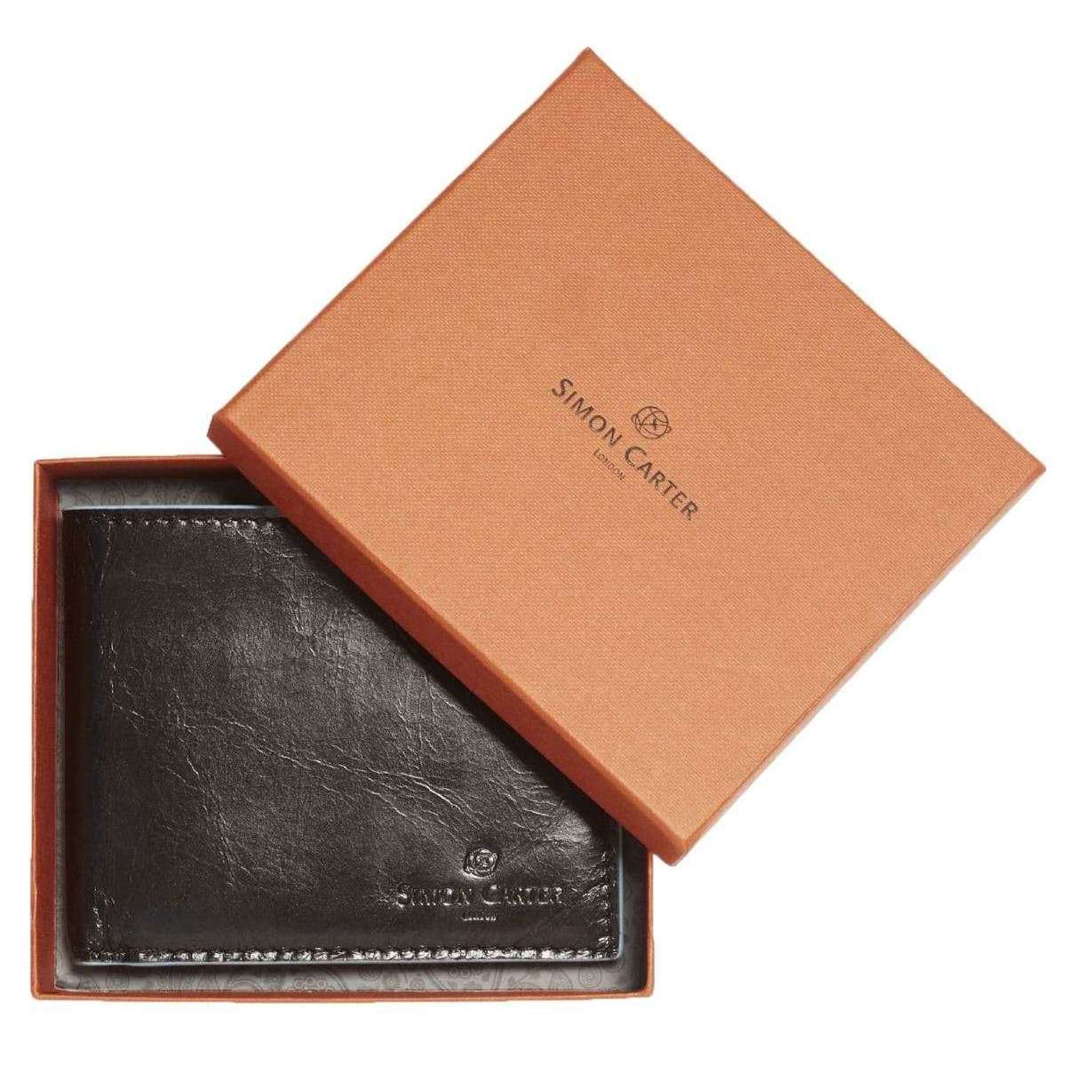 Ce portefeuille Blue Edge pour hommes par la marque Simon Carter est fabriqué à partir de cuir 100% breveté et est présenté en noir. Tous les portefeuilles sont livrés avec une boîte de présentation Simon Carter. Le portefeuille Simon Carter Blue Edge - Black / Pale Blue est un portefeuille élégant en cuir noir avec une finition fissurée qui lui donne un look vintage qui est sûr d'être un nouveau favori de la vôtre. Il dispose d'une poche à six cartes et de deux poches de notes plus grandes ainsi que de deux zones de diapositives sécurisées. Les bords sont finis avec un bleu pâle élégant qui contraste avec le cuir flexible doux du portefeuille.