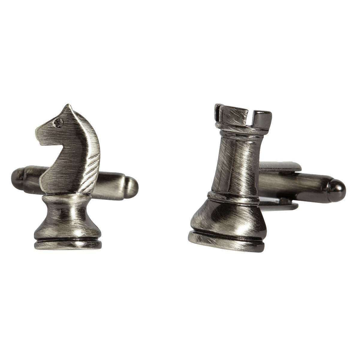 Ces bouchons d'échecs pour hommes pour hommes sont façonnés par la marque Simon Carter de couleur grise et sont fabriquées en métal. Tous les boutons de manchette sont complets dans une boîte de présentation Simon Carter. Les boutons de manchette des pièces d'échecs de Simon Carter - Gray présentent une tour et un chevalier qui a une finition brossée et antique étonnante. Ces boutons de manchette verront un look amusant et créatif sur votre tenue. Si vous êtes un fan du jeu royal, c'est l'accessoire parfait pour vous.