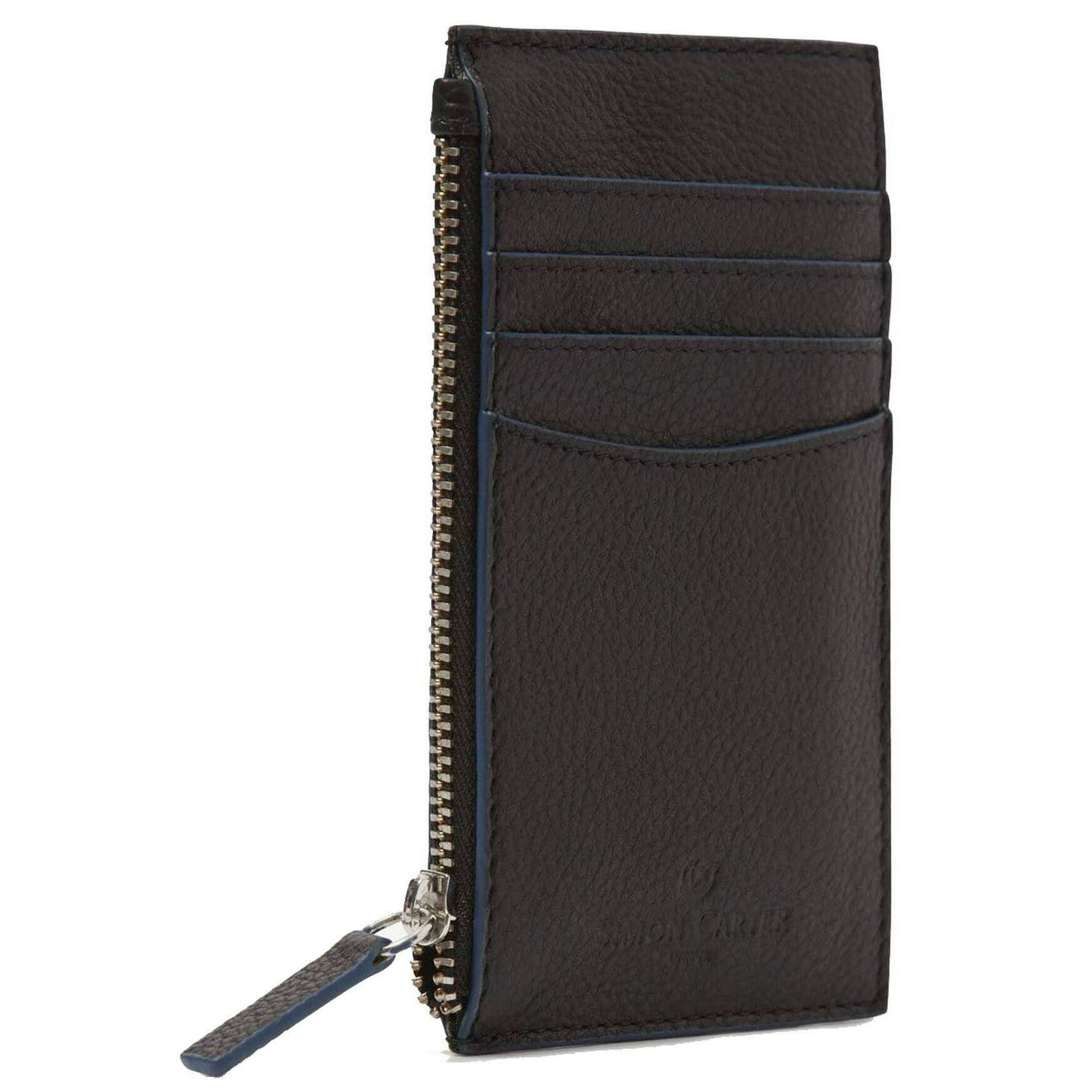 Portefeuille pour cartes de crédit zippé à bords contrastés Simon Carter - Noir/Bleu