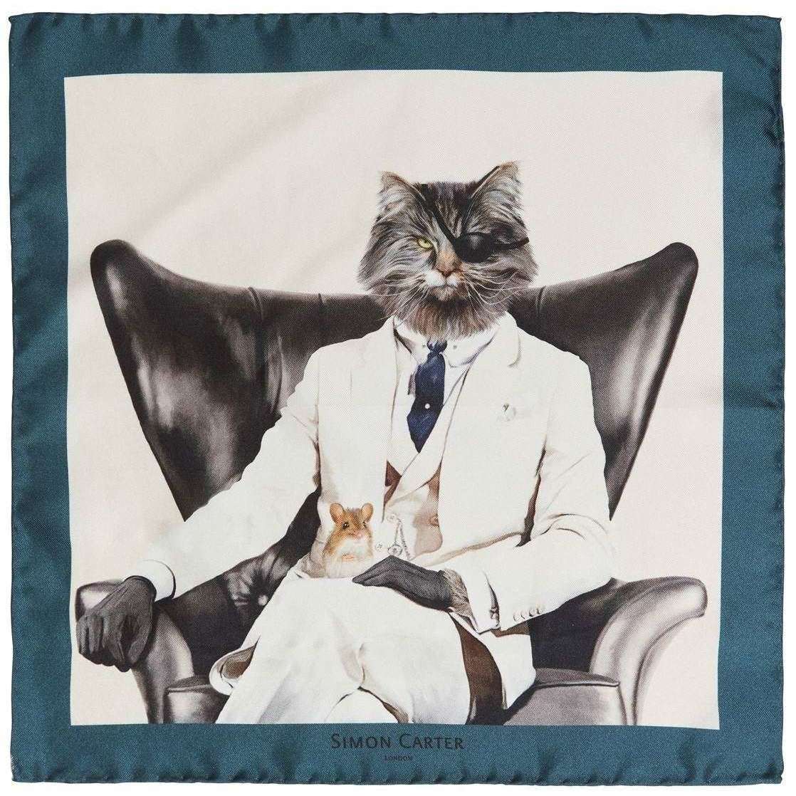 Simon Carter Evil Cat Pocket Square - bleu / blanc