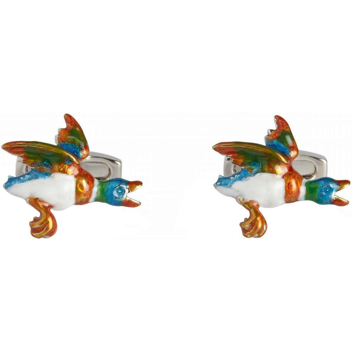 La tongue dans la joue est la phrase parfaite pour décrire ces boutons de manchette de canard volants particuliers de la marque emblématique, Simon Carter. Cette paire de boutons de manchette est fabriqué à la main pour ce look et cette sensation de haute qualité pour lesquels Simon Carter est connu. Son design de canard coloré est inspiré par Hilda Ogden de Coronation Streets et serait parfait pour ajouter un peu de plaisir à votre tenue. L'emballage officiel de Simon Carter est accompagné.