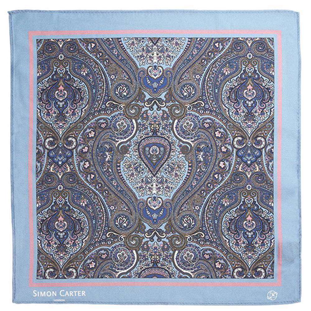 Simon Carter encadré Pocket Silk Pocket Square - Bleu pâle / rose