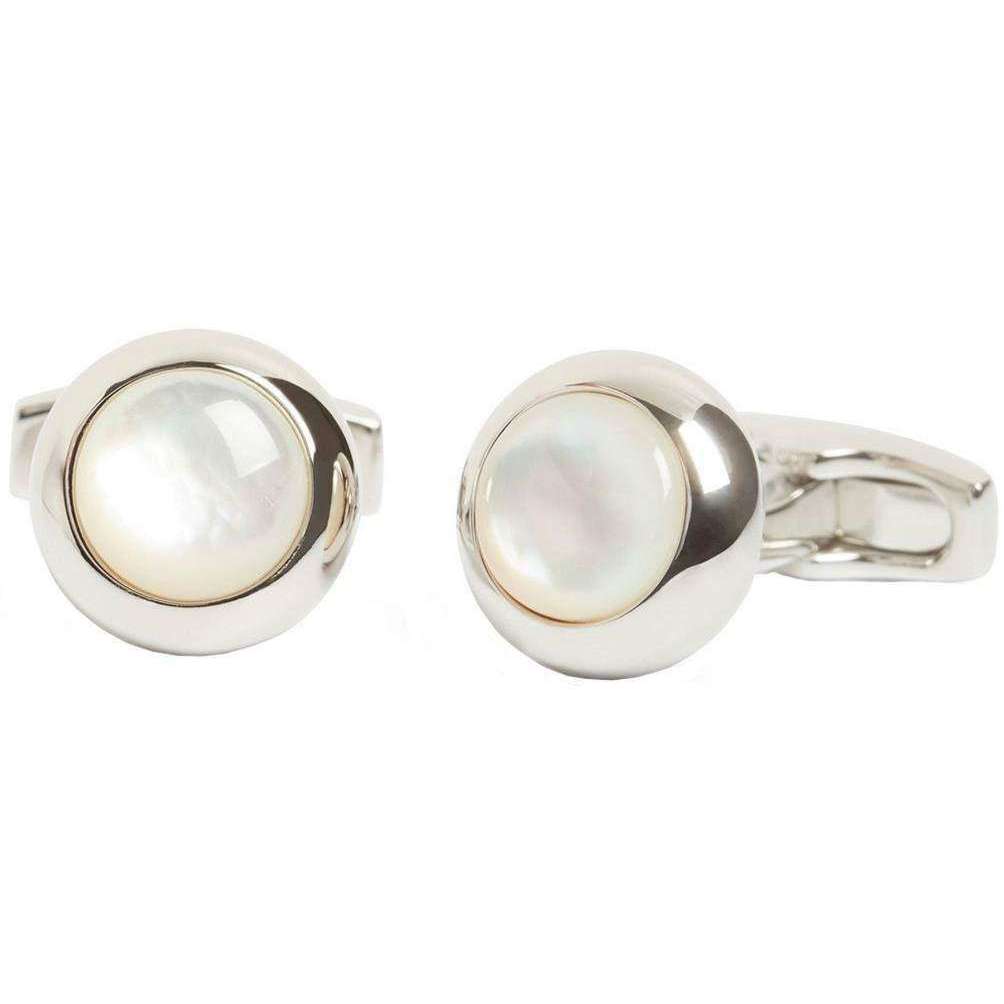Simon Carter Gatsby, élégante mère de boutons de manchette de perle - argent / blanc