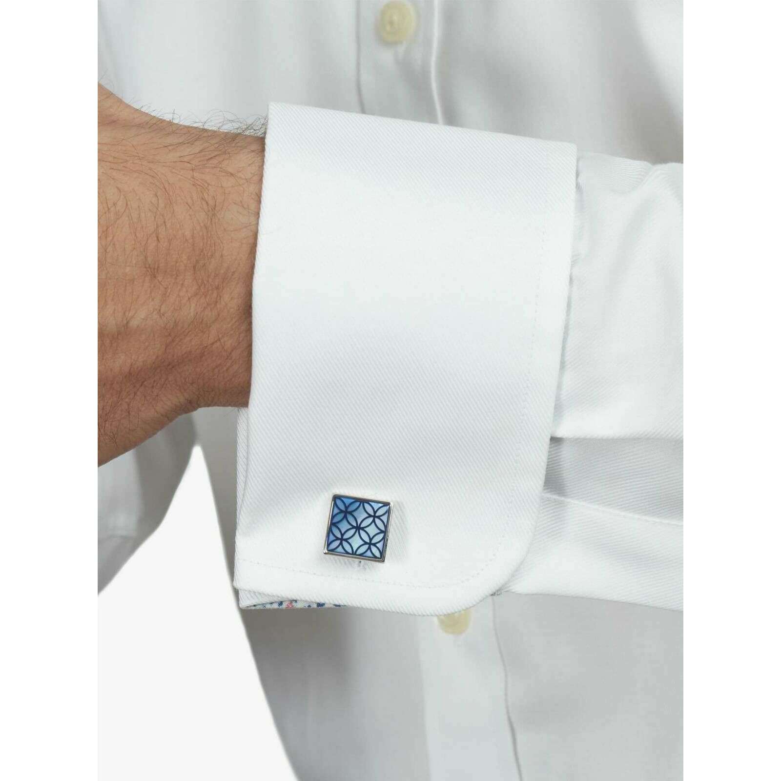 Fabriqués à partir de métal plaqué rhodium et de nacre, ces boutons de manchette en nacre à pétales géo bleu/argent pour hommes du designer Simon Carter. Tous les boutons de manchette sont livrés dans un emballage Simon Carter. Les boutons de manchette en nacre Geo Petal de Simon Carter - Bleu/Argent présentent un design élégant en forme de carrelage sur une pierre de nacre bleue. Cet ensemble de boutons de manchette est la touche finale parfaite pour toute occasion formelle et constitue un excellent cadeau pour tous les messieurs !