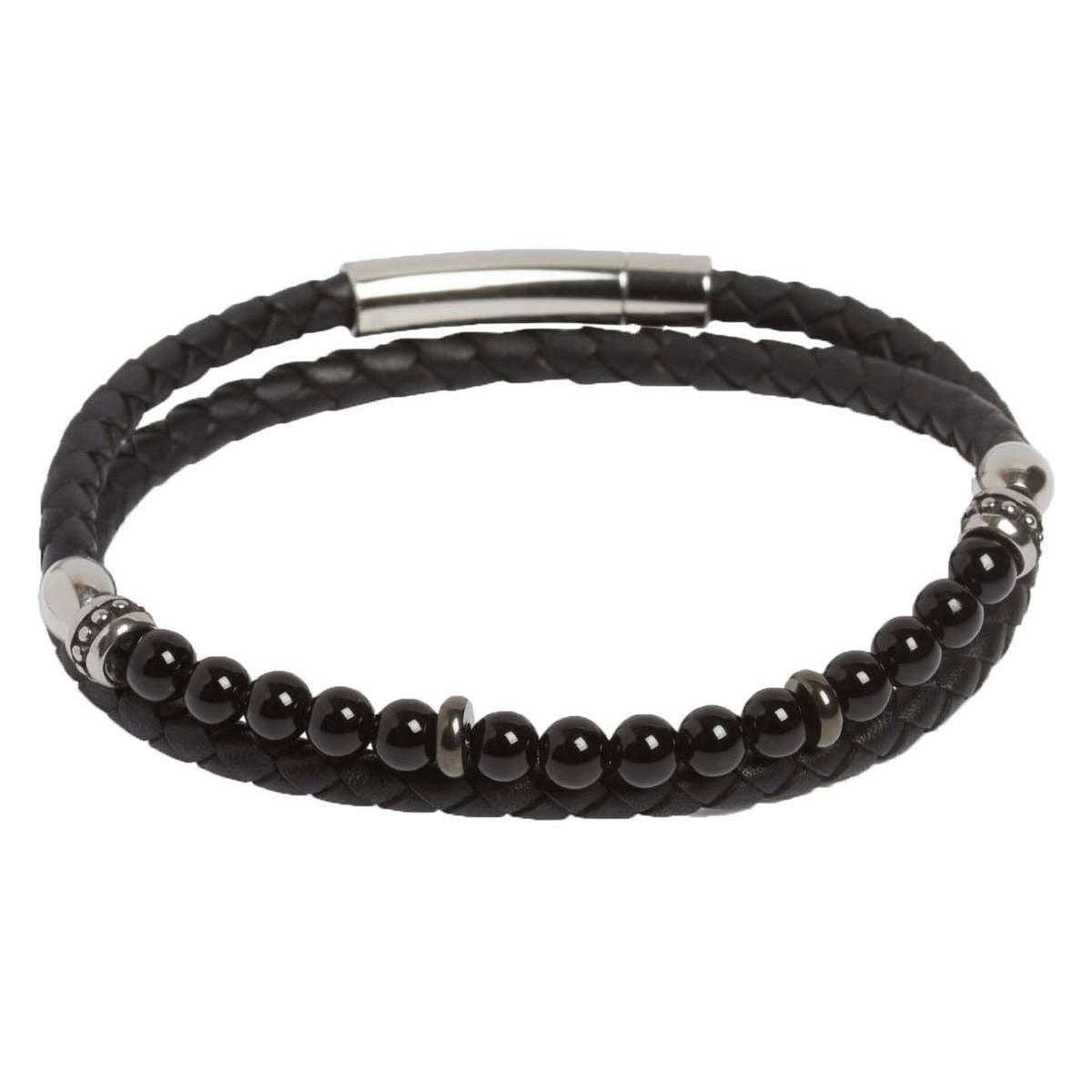 Fabriqué en cuir, en onyx et en acier inoxydable se trouve ce bracelet Black Men's Hayle Onyx Wrap par le designer Simon Carter. Il mesure 42 cm (longueur). Tous les bracelets sont livrés avec la boîte de présentation Simon Carter. Le bracelet Wrap Simon Carter Hayle Onyx - Black est un bracelet en cuir noir tressé à double boucle qui présente une section de petites perles d'Onyx et un fermoir à déclenchement de haute technologie. Fournir un look sophistiqué, ce bracelet Hayle Onyx sera un nouveau rendez-vous pour vous.