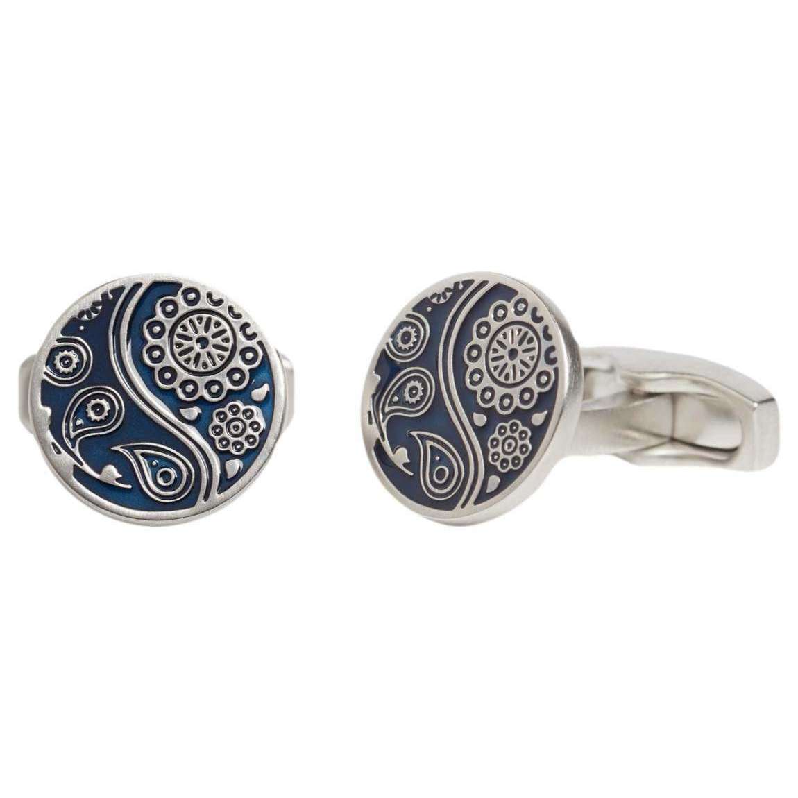Ces boutons de manchette en émail de Guilloche pour hommes ont été fabriqués à partir de métal de base et d'émail plaqué du rhodium, présenté dans une couleur bleu marine et sont de la marque Simon Carter. Tous les boutons de manchette sont complets dans une boîte de présentation Simon Carter. Les boutons de manchette en émail Simon Carter Paisley Guilloche - Navy ont un motif magnifiquement complexe qui est certain de faire tourner les têtes. Ils ont été fabriqués à partir de matériaux luxueux pour s'assurer qu'ils sont de haute qualité et durables. Ceux-ci sont conçus avec un ajustement de barre en T pivotant, ce qui signifie qu'ils sécuriseront parfaitement votre brassard.