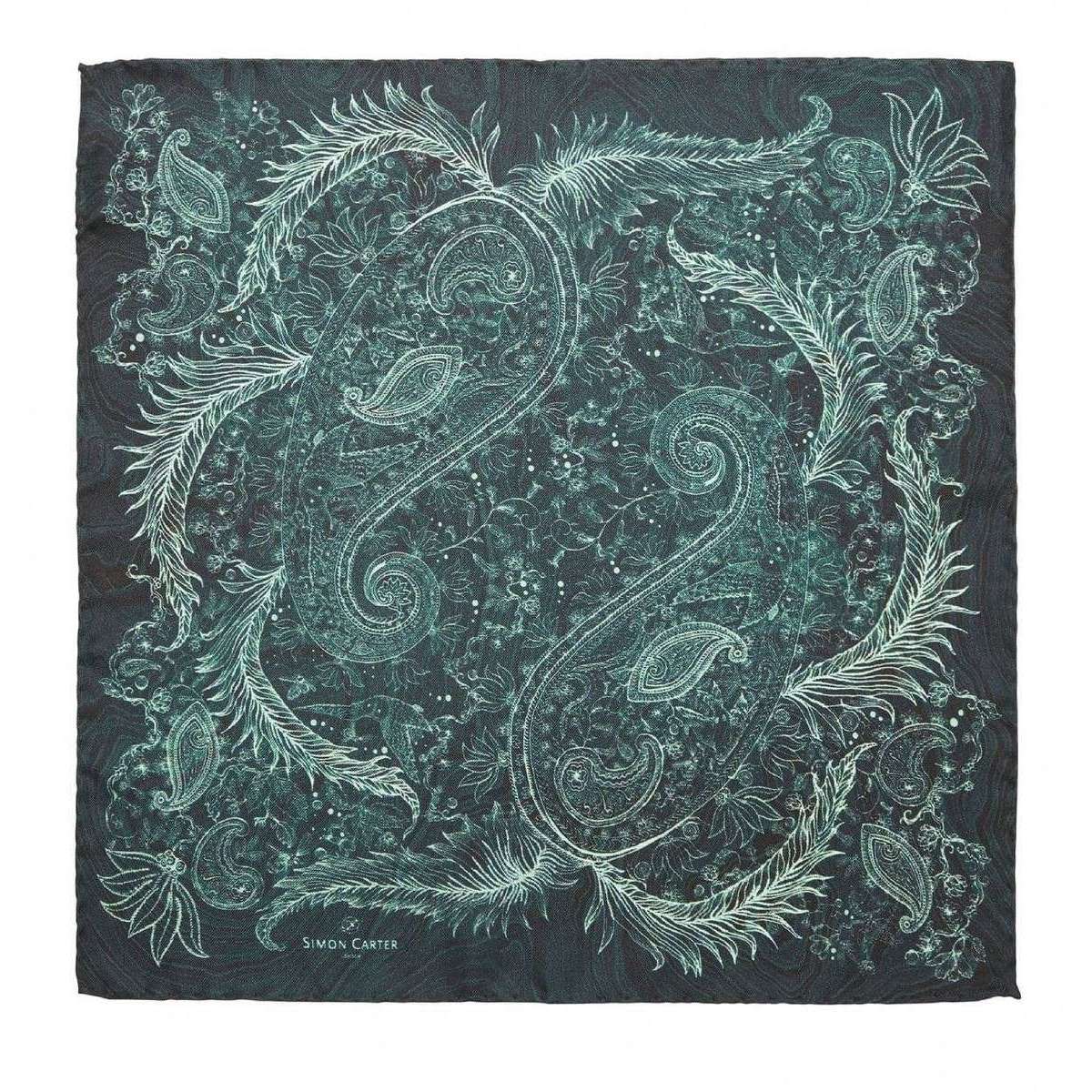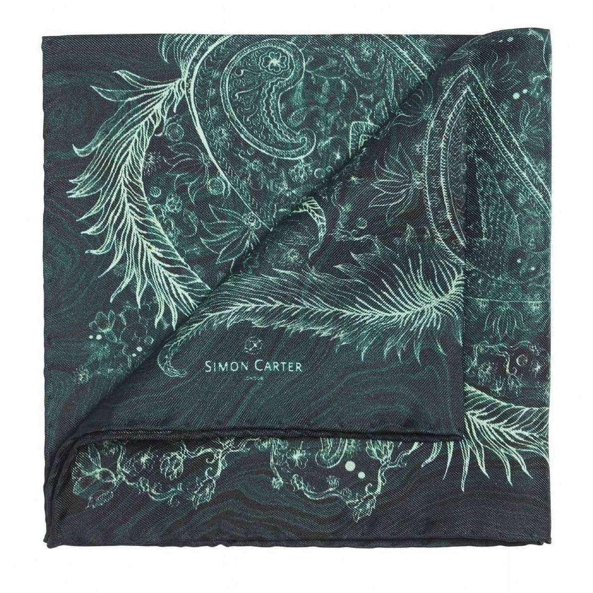 Simon Carter Paisley Night Silk Pocket Square - Green