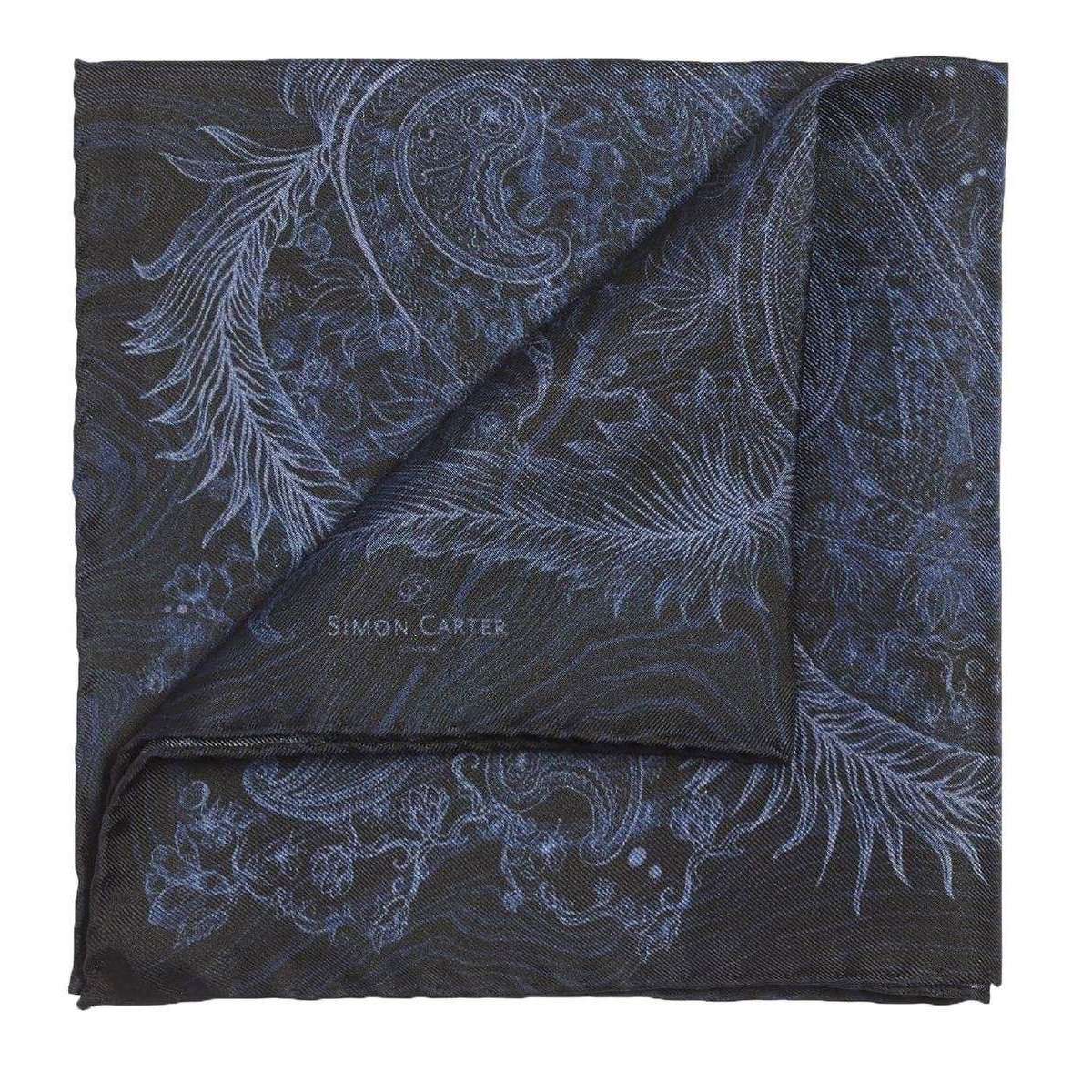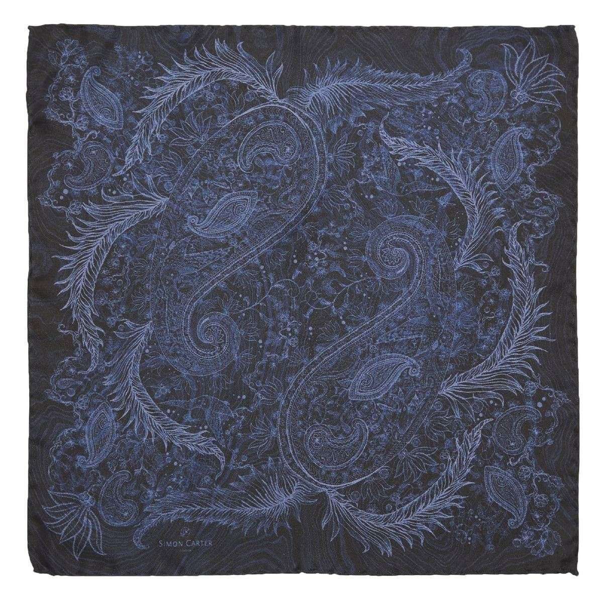Simon Carter Paisley Night Silk Pocket Square - Marine