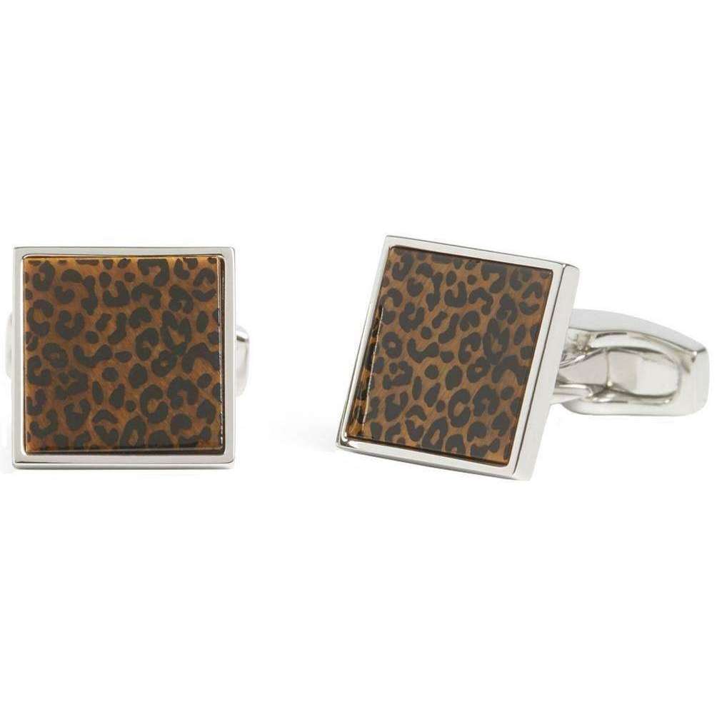 Simon Carter Safari Leopard Print Cufflinks - Silver / Brown
