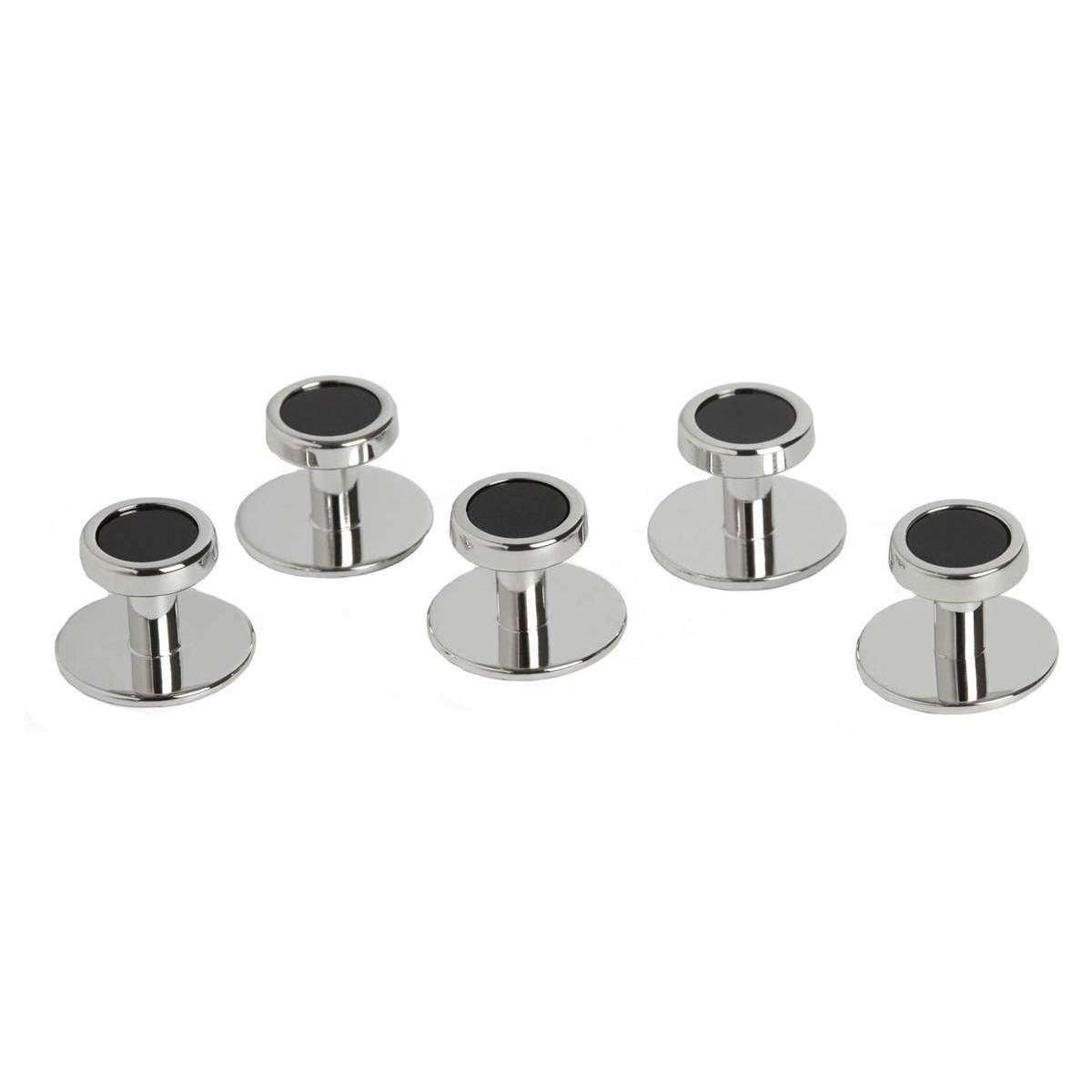 Le designer Simon Carter vous a apporté ces étalons de chemise en métal plaqué en rhodium et en onyx à l'aide de tons argentés / noirs. Tous les goujons de chemise sont complets dans une boîte de présentation Simon Carter. Les goujons de robe de chemise Simon Carter - Silver / Black sont disponibles dans un ensemble de cinq et sont l'ajout idéal à une collection d'accessoires formels. Fabriqués de manière experte à un niveau élevé, ces goujons simples mais élégants présentent du métal brillant autour d'un centre onyx et sont certains d'impressionner.