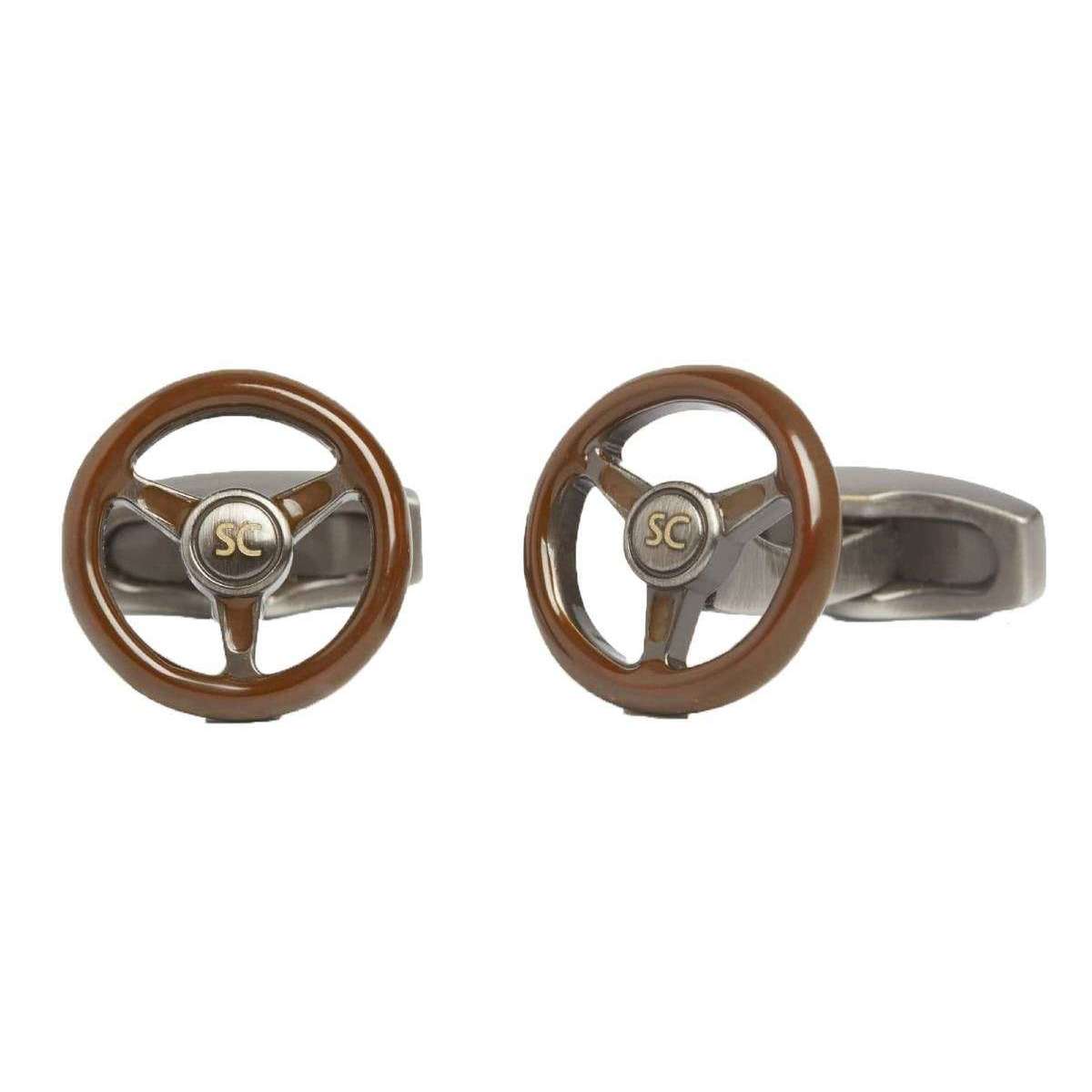 Simon Carter Wheel Cought boutons de manchette - gris de la moue / marron
