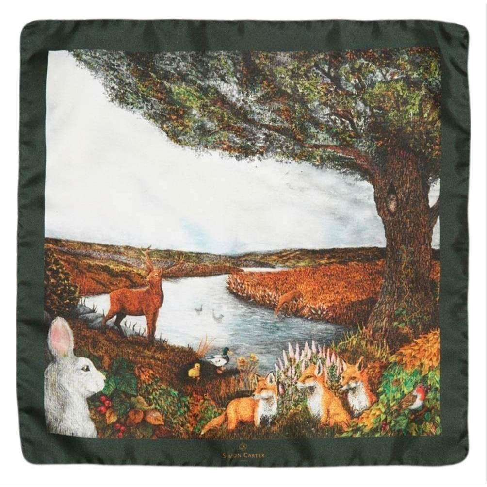 Ce carré de poche des bois pour hommes par la marque Simon Carter est fabriqué à partir de la soie 100% italienne et est présenté en vert. Il mesure 30 cm (hauteur) x 30 cm (largeur). De plus, le carré de poche vert est conçu dans un motif unique, tous les carrés de poche sont livrés avec des étiquettes Simon Carter. Le Simon Carter Woodland Pocket Square - Green serait le cadeau parfait pour tout Countryman. Ce magnifique carré de poche a été conçu avec une scène pastorale avec des cerfs, des nuls, des renards et de nombreux autres animaux boisés. Son design charmant irait parfait avec n'importe quelle tenue et sera certain d'attraper les yeux de beaucoup.