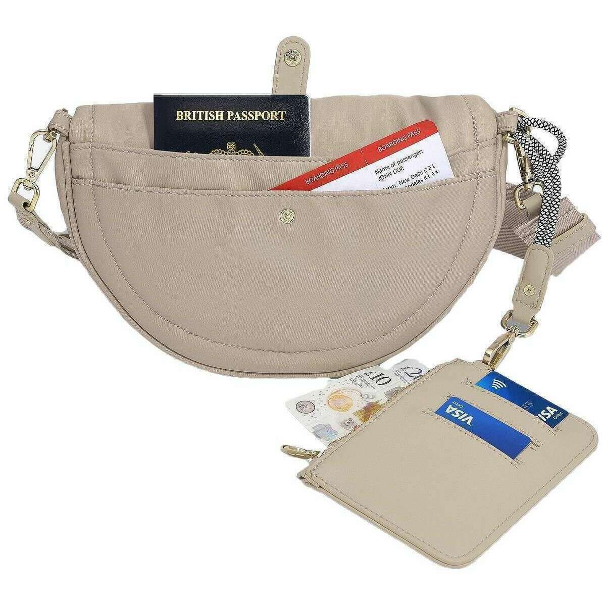 • Fermeture à glissière, sangle réglable détachable, poches intérieures, poches arrière extérieures, sac à main attaché à la pochette attachée