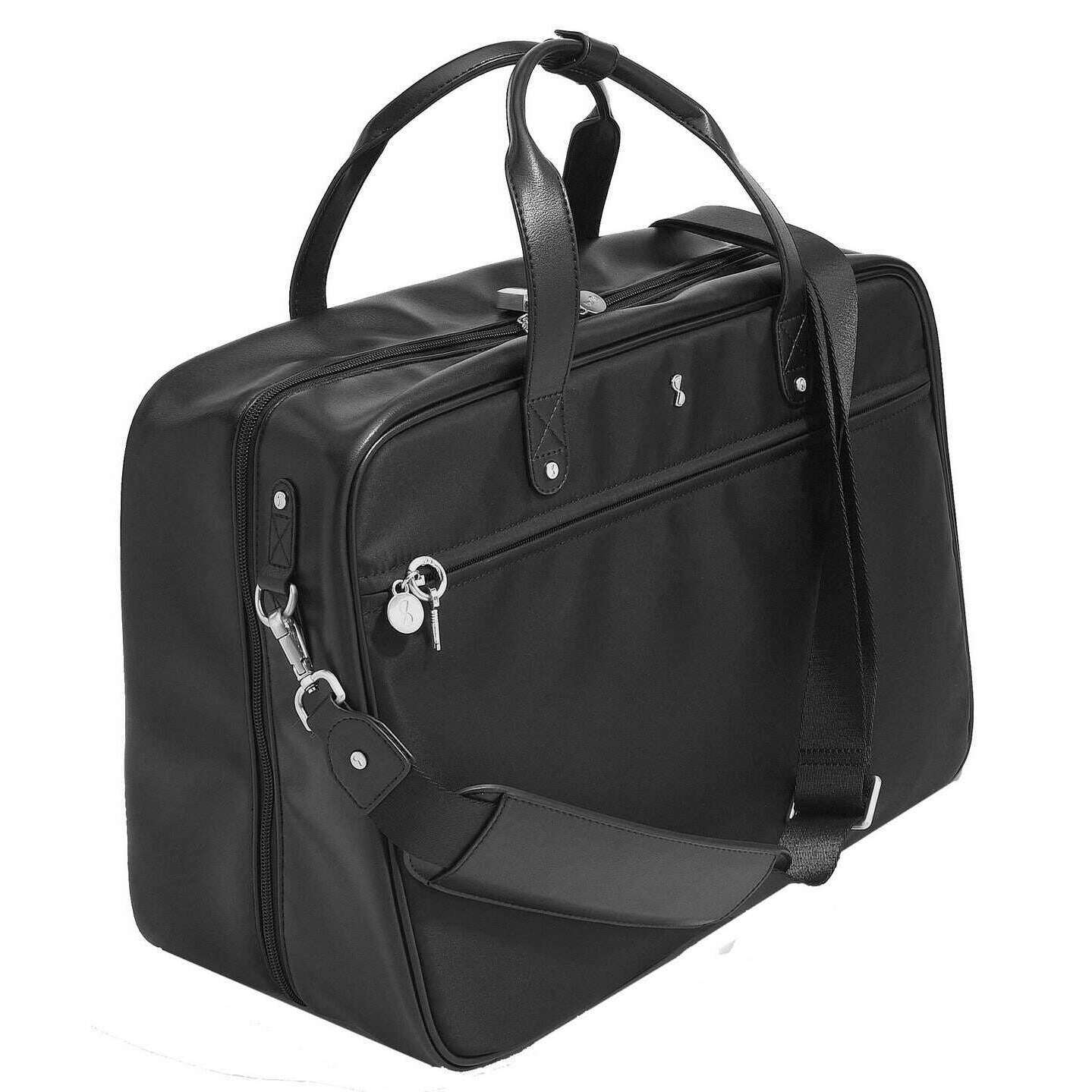 Ce sac cabine pour femme bien conçu de Stackers est de couleur noire et est fabriqué en simili cuir et en velours. Il mesure 33,5 cm (hauteur) x 22,5 cm (largeur) x 46 cm (profondeur). Tous les sacs sont livrés avec un emballage stacker. Le sac cabine Stackers - Noir est parfait pour une utilisation en déplacement. Ce sac cabine noir comprend une poche pour ordinateur portable, deux grands compartiments zippés et une gamme de petites poches. Complet avec des bretelles, des bretelles de sac à dos et une fermeture éclair pour plus de sécurité.
