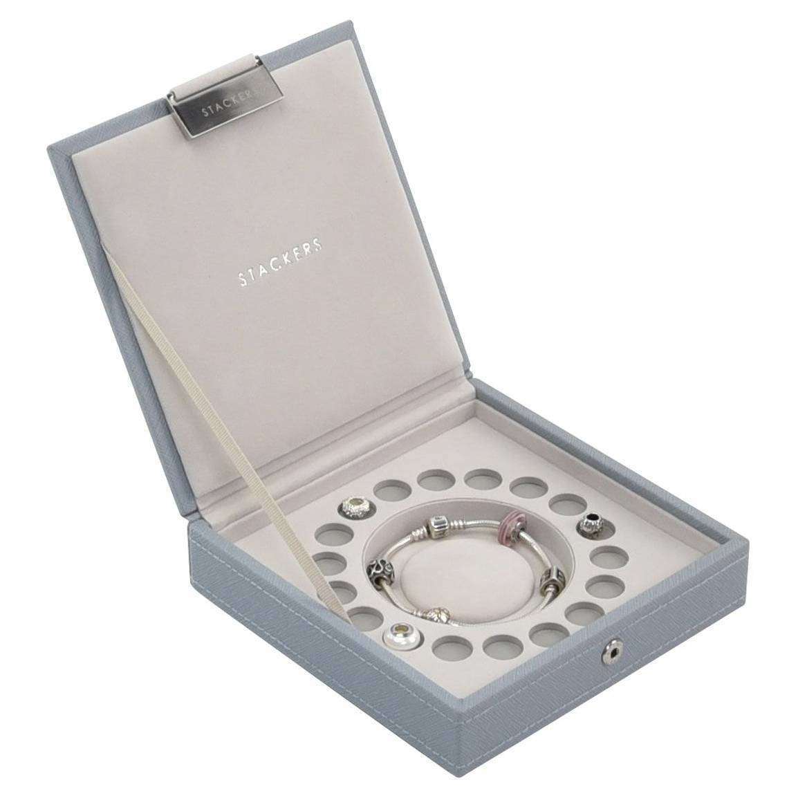 Cette boîte à charme féminine bien faite des empiètes est livrée dans une couleur bleu / gris sombre et est fabriquée à partir de PU avec velours. Il mesure 3,5 cm (hauteur) x 15 cm (largeur) x 15 cm (profondeur). Toutes les boîtes à bijoux sont complètes dans l'emballage des empiles. La boîte à charme des empilers - Blue / gris sombre ferait le cadeau parfait à toute femme avec un bracelet à charme. Cette boîte peut contenir jusqu'à 18 charmes et votre bracelet dans une conception organisée sans faille. Avec une fermeture de popper en métal, c'est facile à voyager, en gardant tout en sécurité au même endroit.