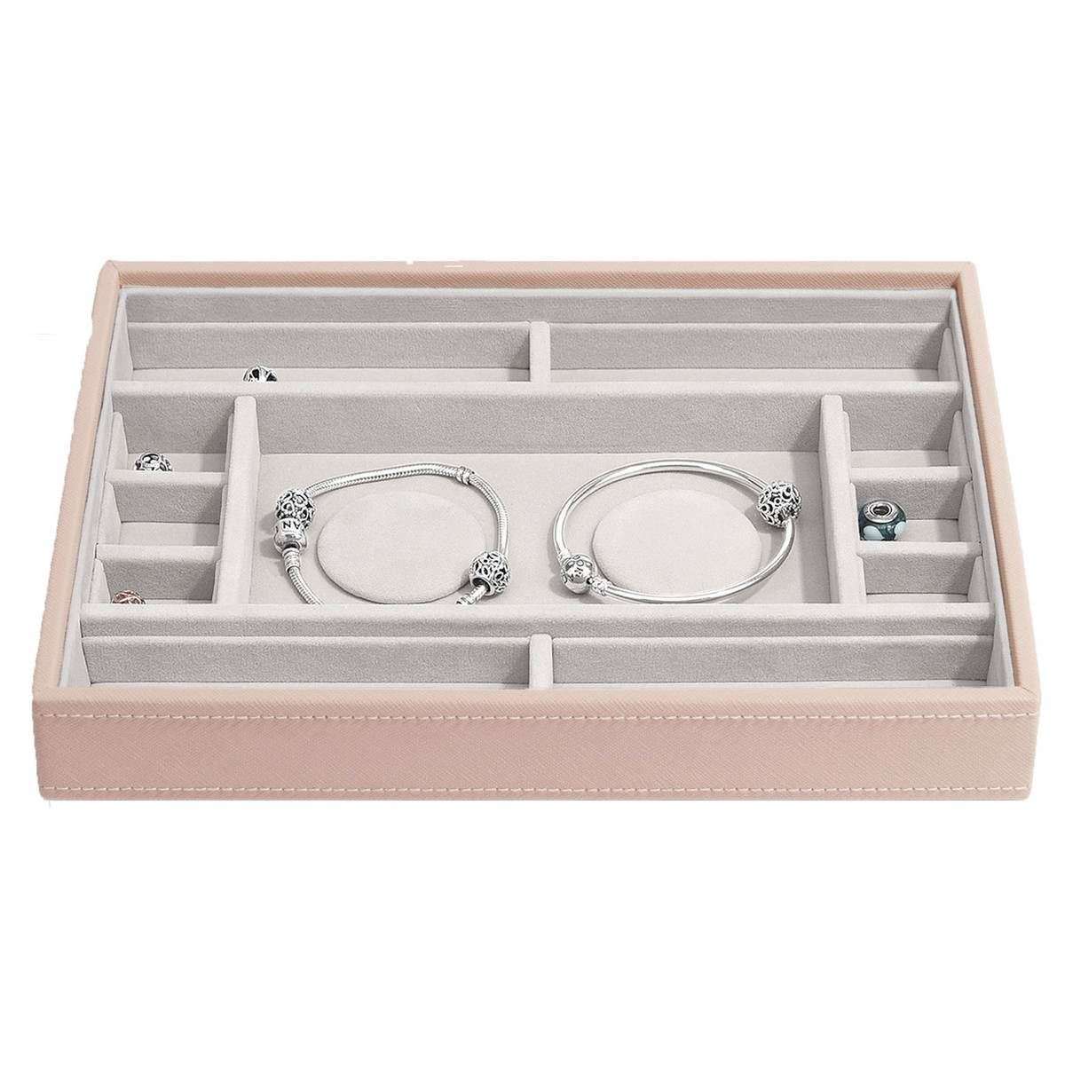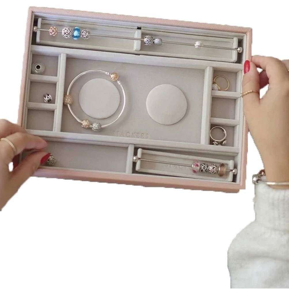 Ce plateau de bijoux de charme classique 2 à charme féminin a été fabriqué à partir de faux cuir et de velours, présenté dans une couleur rose et provient de la marque. Il mesure 3,7 cm (hauteur) x 25 cm (largeur) x 18 cm (profondeur). Toutes les boîtes à bijoux sont complètes avec des emballages Stackers. Le plateau de bijoux Bracelet Classic Classic Classic 2 - Blush Pink dispose de 2 tampons de bracelet pour stocker des bracelets de charme terminés ainsi que des compartiments multiples pour tout charme supplémentaire. Les sections latérales ont été conçues pour s'adapter à 4 barres de charme courtes ou 2 barres de charmes longues avec les séparateurs retirés. Ce plateau peut être ajouté à d'autres couches pour créer la boîte à bijoux parfaite ou utilisée en soi.