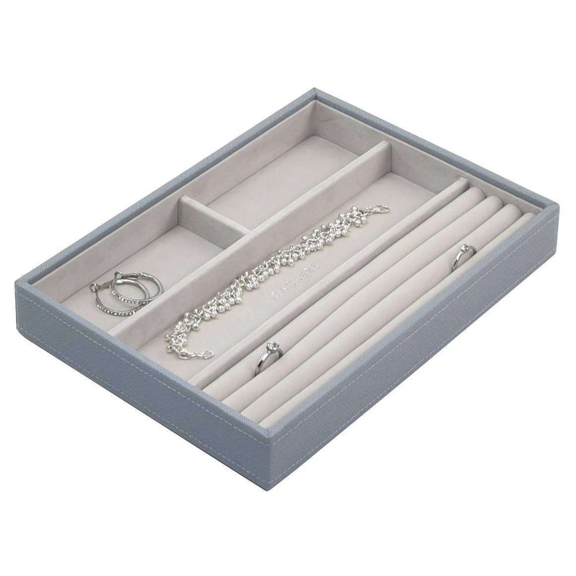 Ce plateau de bijoux classique à 4 sections pour les femmes est façonné par les empileurs de marque de couleur bleue et est fabriqué à partir de PU avec velours. Il mesure 3,5 cm (hauteur) x 25 cm (largeur) x 18 cm (profondeur). Toutes les boîtes à bijoux sont complètes dans l'emballage des empiles. Le plateau de bijoux Stackers Classic 4 section - Blue Dusky / gris dispose d'un rouleau de bague intégré pour garder davantage de bagues à l'abri de la perte. Ce plateau a été fabriqué avec une grande section pour les bracelets et les colliers, et deux sections plus petites pour ces autres articles précieux pour rester en sécurité. Être un excellent article pour tout amateur de bijoux, faites-le le cadeau parfait pour eux.