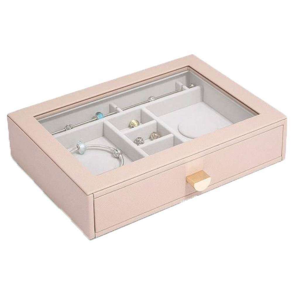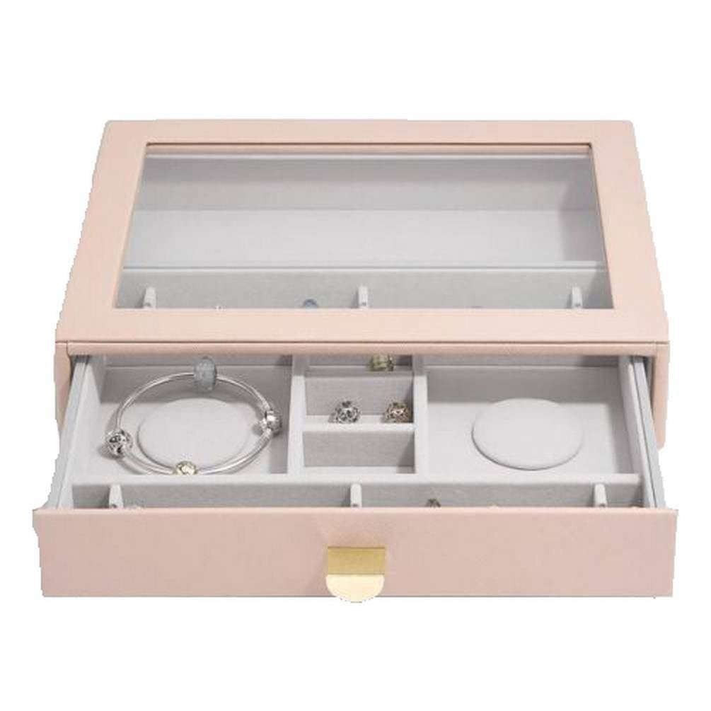 Le tiroir du couvercle en verre de charme classique des empilers - le rose blush est fabriqué à partir de faux cuir et de velours. La boîte à bijoux Blush Pink est complète dans les emballages Stackers. La boîte à bijoux non en cuir des femmes fait de grands cadeaux. Achetez le tiroir de couvercle en verre Classic Classic Classic - Blush Pink maintenant.