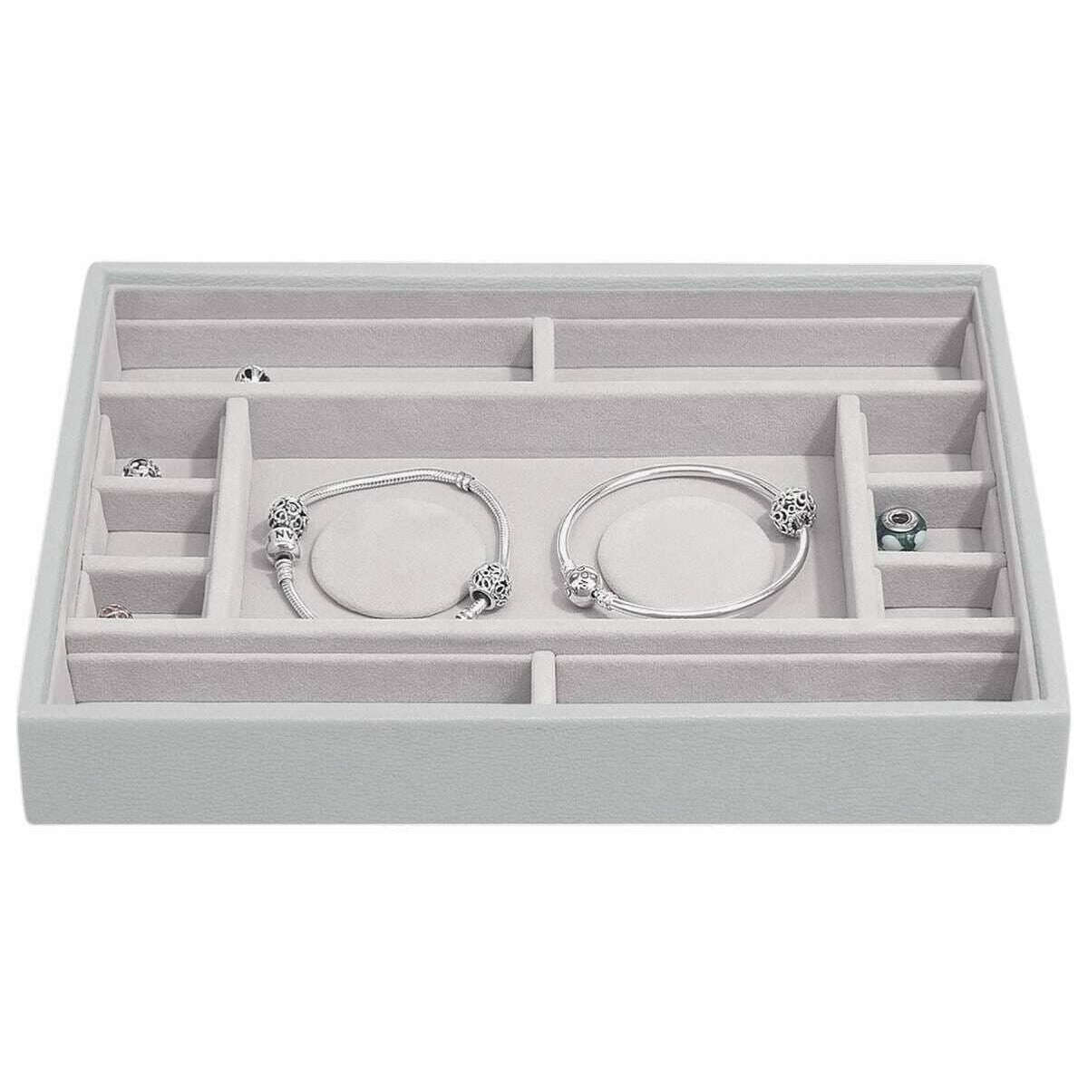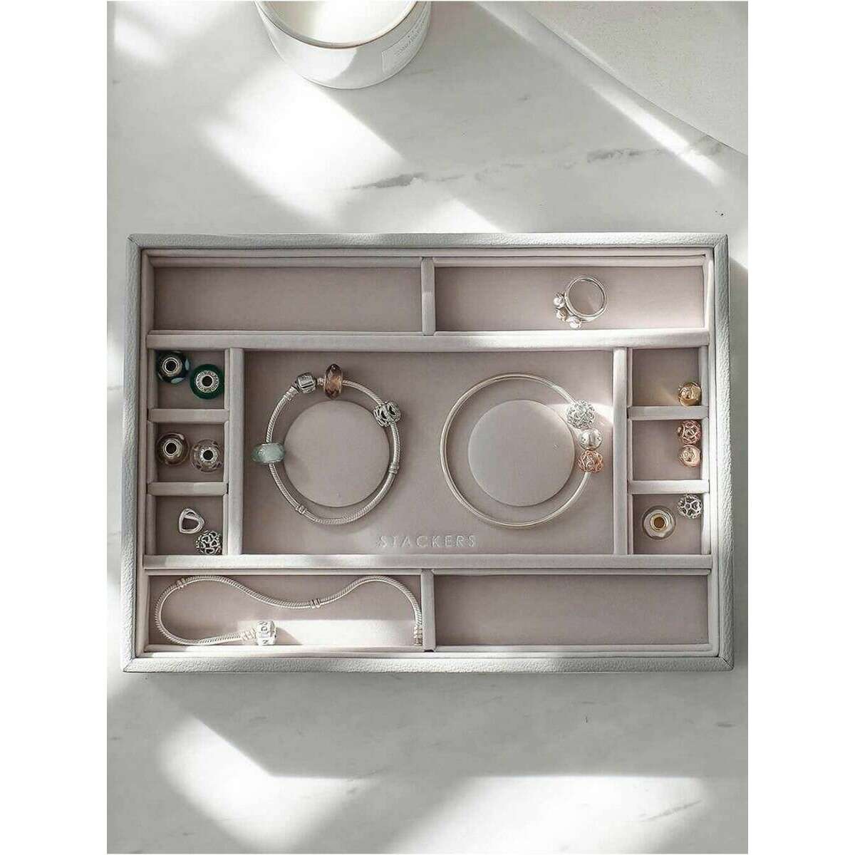 Cette couche multi-bracelets classique pour femme de la marque Stackers est fabriquée en simili cuir et en velours et est présentée en gris. Il mesure 3,7 cm (hauteur) x 25 cm (largeur) x 18 cm (profondeur). Il est recommandé de l'essuyer pour conserver cette boîte à bijoux en bon état. Toutes les boîtes à bijoux sont livrées avec un emballage stacker. Le Stackers Classic Multi-Bracelet Layer - Pebble Grey comprend 2 coussinets de bracelet pour ranger les bracelets à breloques terminés ainsi que plusieurs compartiments pour les breloques supplémentaires. Les sections latérales ont été conçues pour accueillir 4 barres de charme courtes ou 2 barres de charme longues avec les séparateurs retirés. Ce plateau peut être ajouté à d'autres couches pour créer la boîte à bijoux parfaite ou utilisé seul.