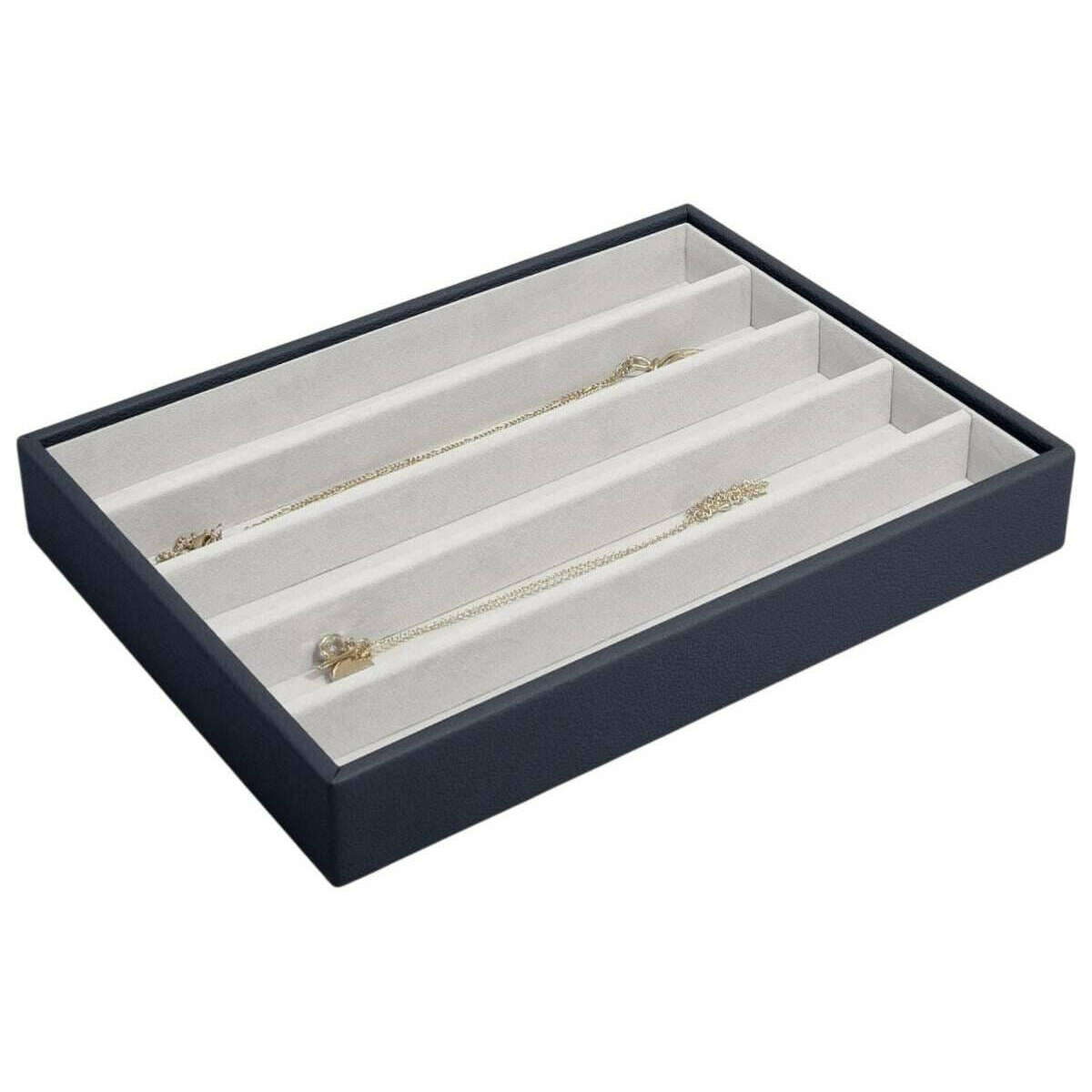 Ce collier classique pour femme a été fabriqué à partir de faux cuir et de velours, de couleur bleu marine et provient de la marque Stackers. Il mesure 3,7 cm (hauteur) x 25 cm (largeur) x 18 cm (profondeur). Il est recommandé de l'essuyer pour conserver cette boîte à bijoux en bon état. Toutes les boîtes à bijoux sont livrées avec un emballage stacker. Le Stackers Classic Necklace Layer - Navy Blue comporte cinq longues sections qui constituent une couche parfaite pour ranger les colliers, les bracelets et les pendentifs. Les sections sont également compatibles avec les longues barres de charme. Doublé d'un beau velours pour garder vos bijoux en parfait état, il peut être utilisé seul sur votre commode ou associé à d'autres pièces pour construire une boîte à bijoux plus grande.
