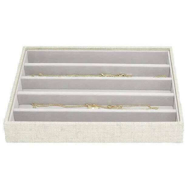 Présenté par les empileurs de marque, ce plateau de collier classique féminin de farine d'avoine / lin est fabriqué à partir de faux cuir et de lin. Il mesure 3,7 cm (hauteur) x 25 cm (largeur) x 18 cm (profondeur). Toutes les boîtes à bijoux sont complètes dans l'emballage des piles. Le plateau de collier classique des empilers - Beige à avoine / lin peut être empilé avec d'autres couches de la collection Stackers pour créer votre propre boîte de bijoux personnalisée qui convient à votre collection. Alternativement, il peut être utilisé seul pour organiser vos colliers afin que vous n'ayez pas à continuer de les démêler. Fabriquée professionnellement avec des matériaux de haute qualité, cette belle couche serait idéale pour ceux qui aiment accessoiriser.