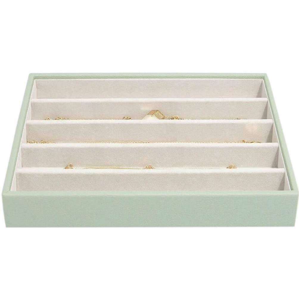 Présentant ce plateau de collier classique pour femmes par Stackers, il est fabriqué à partir de faux cuir et de velours dans une couleur verte sage. Il mesure 25 cm (longueur) x 18 cm (largeur) x 3,7 cm (profondeur). Toutes les boîtes à bijoux sont complètes avec des emballages Stackers. Le plateau de collier classique Stackers - Sage Green peut être empilé avec d'autres couches de la collection Stackers pour créer votre propre boîte de bijoux personnalisée qui convient à votre collection. Alternativement, il peut être utilisé seul pour organiser vos colliers afin que vous n'ayez pas à les démêler. Fabriqué professionnellement avec des matériaux de haute qualité, cette belle couche serait idéale pour ceux qui aiment accessoiriser.
