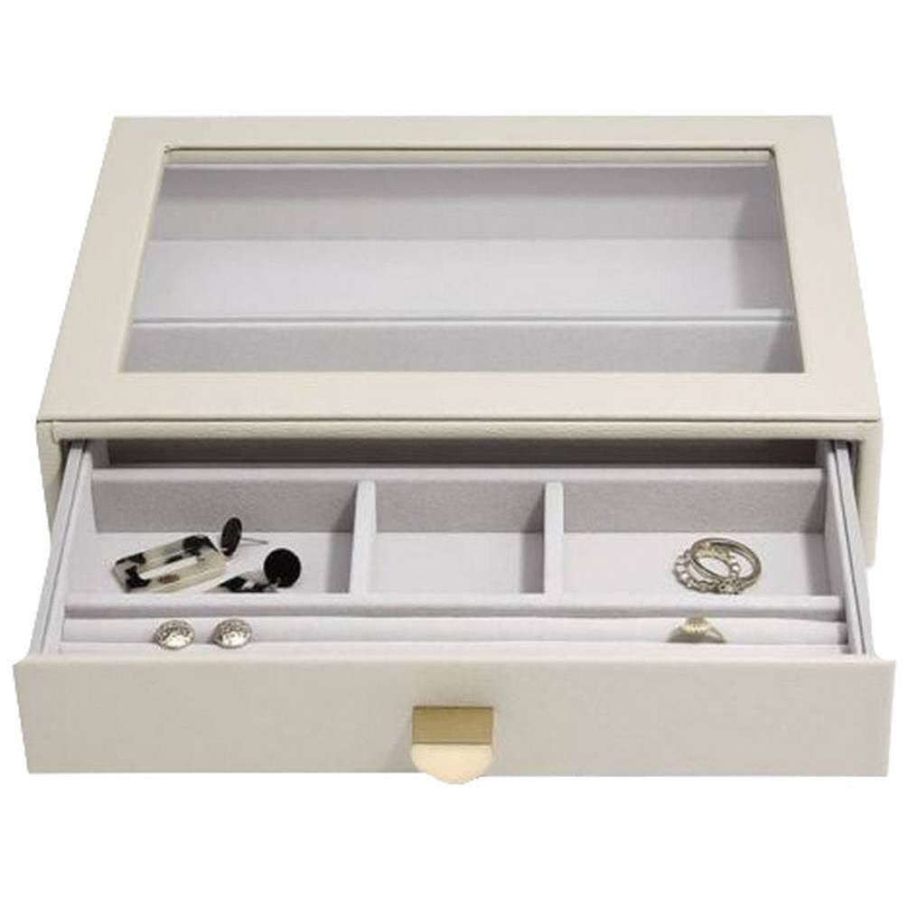 Le tiroir de couvercle en verre de l'anneau et du bracelet Stackers - Beige à l'avoine est fabriqué à partir de faux cuir et de velours. La boîte à bijoux beige à l'avoine est complète dans les emballages Stackers. La boîte à bijoux non en cuir des femmes fait de grands cadeaux. Achetez le couvercle de couvercle en verre classique des empilers et du bracelet - beige à l'avoine maintenant.