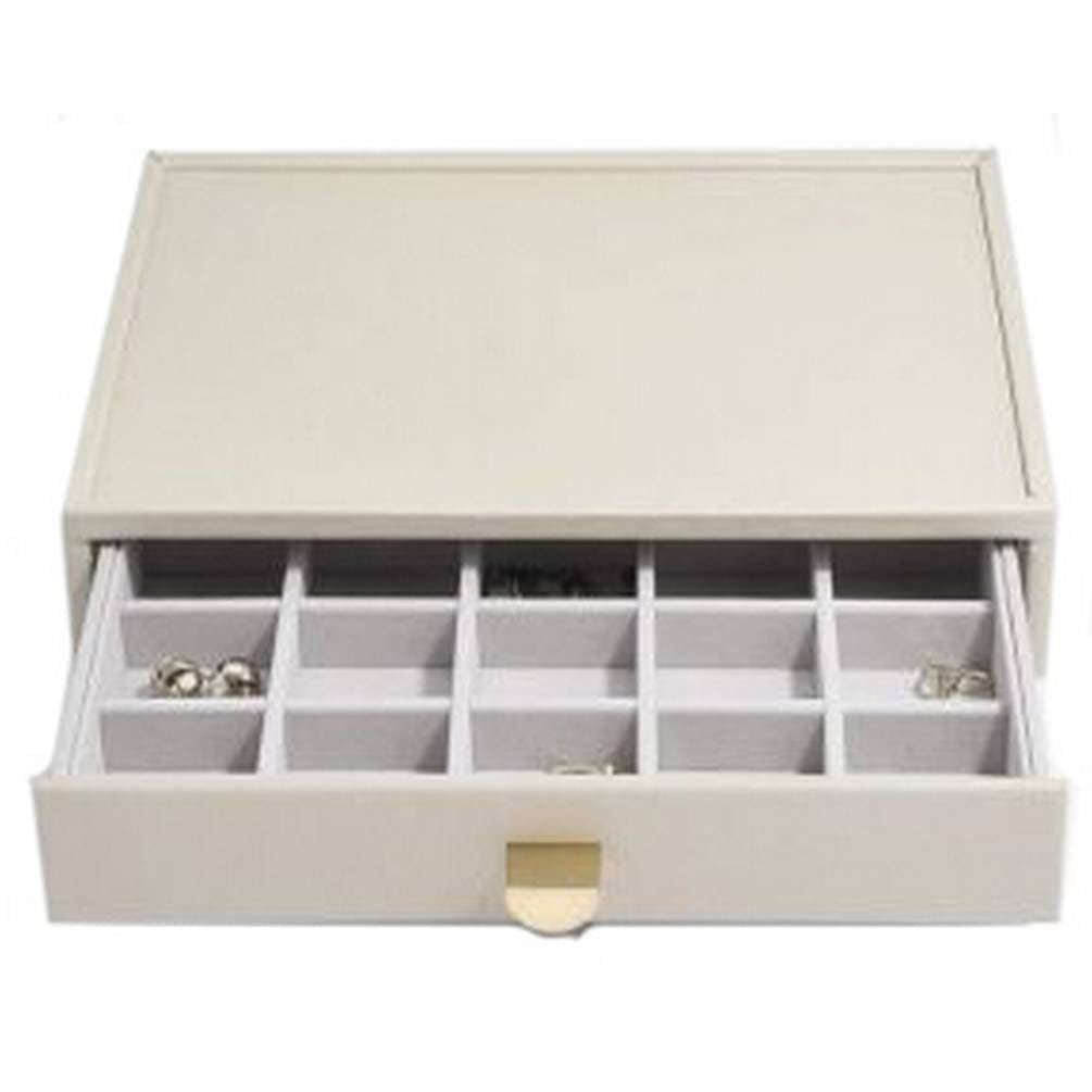 Le tiroir à bibliothèque classique des empilers - beige à l'avoine est fabriqué à partir de faux cuir et de velours. La boîte à bijoux beige à l'avoine est complète dans les emballages Stackers. La boîte à bijoux non en cuir des femmes fait de grands cadeaux. Achetez le tiroir à bilan Classic Stackers - Beige à l'avoine maintenant.