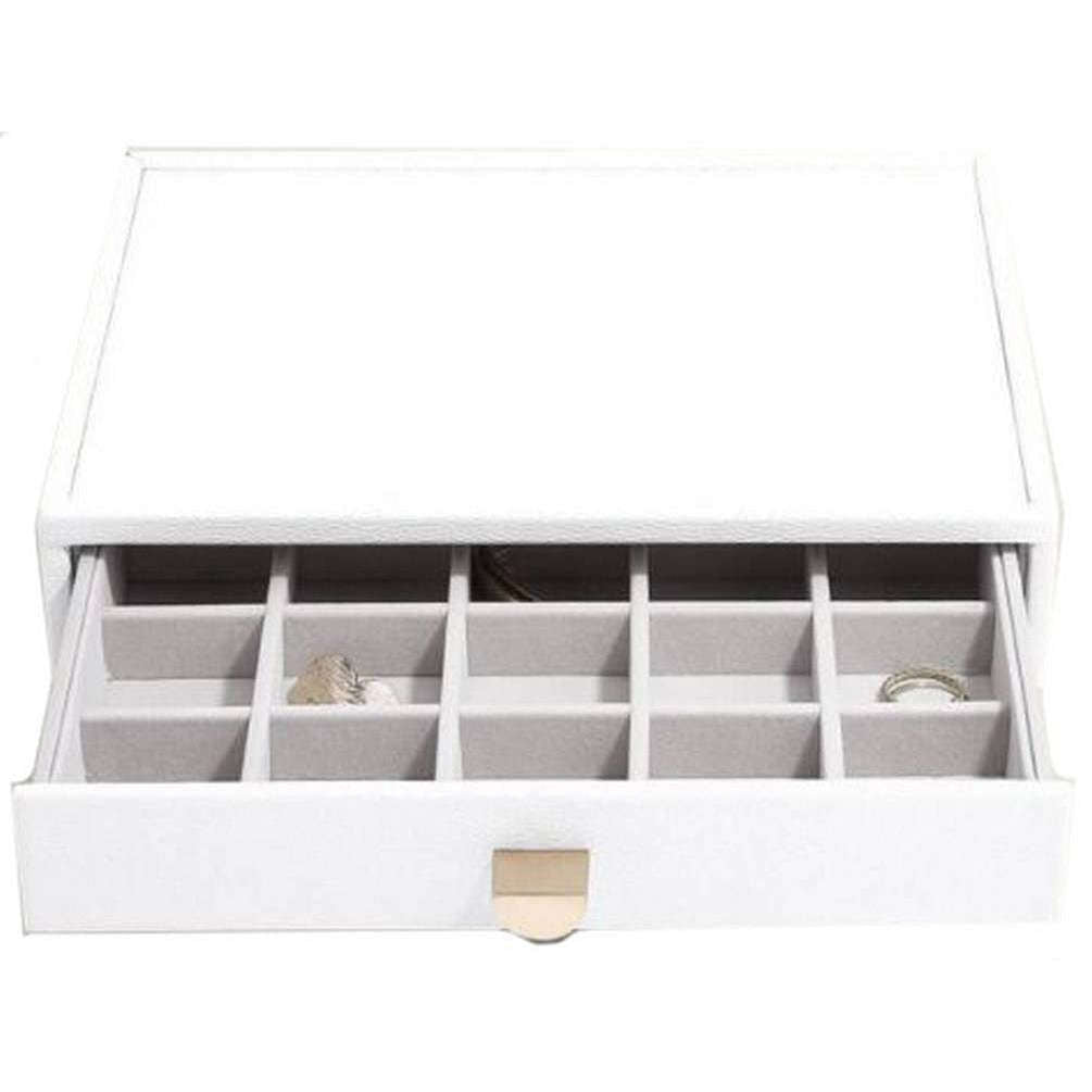 Le tiroir à bibliothèque classique des empilers - le blanc Pebble est fabriqué à partir de faux cuir et de velours. La boîte à bijoux White Pebble est complète dans les emballages Stackers. La boîte à bijoux non en cuir des femmes fait de grands cadeaux. Achetez le tiroir à bilan Classic Stackers - Pebble White maintenant.