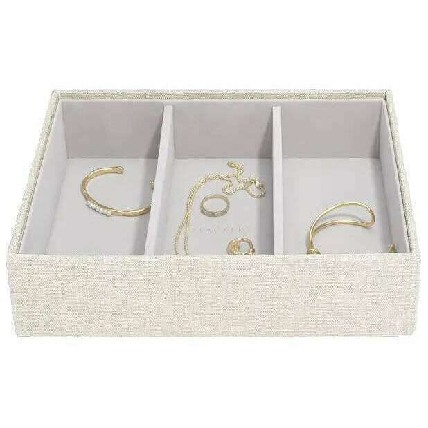 Fabriquée en faux cuir et en lin se trouve ce plateau classique et accessoire de farine d'avoine / lin par les designer Stackers. Il mesure 6,2 cm (hauteur) x 25 cm (largeur) x 18 cm (profondeur). Toutes les boîtes à bijoux sont complètes dans l'emballage des piles. Le plateau Classic Watch and Accessory Classic Watch - Beige de grains d'avoine / lin est parfait pour organiser vos accessoires plus grands et peut être utilisé pour le stockage dans le dessin, ou empilé avec d'autres couches de la collection Stackers pour créer une boîte de bijoux personnalisée. Idéal pour les femmes qui aiment accessoiriser, cette charmante couche a l'air élégante et intelligente et a été professionnellement conçue à partir de matériaux de haute qualité.