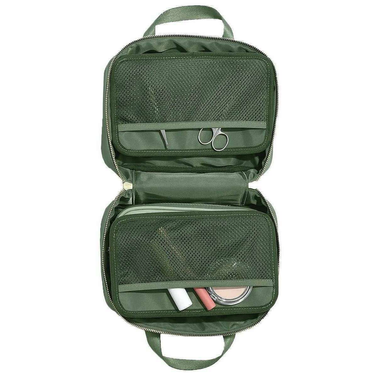 Des concepteurs vous ont apporté ce sac en nylon recyclé pour femmes en utilisant des tons verts. Il mesure 15,5 cm (hauteur) x 25,2 cm (largeur) x 11 cm (profondeur). Tous les sacs sont complets dans l'emballage des pilers. Le sac de lavage suspendu des empilers - le vert est le compagnon idéal chaque fois que vous partez dans vos voyages en raison de la fonction pliable qui s'installe parfaitement dans votre sac à l'extérieur. Le rangement ne sera pas un problème avec ce magnifique sac de lavage car il comporte de nombreux compartiments avec de magnifiques caractéristiques d'organisation, ainsi qu'une section principale avec un sac zippé amovible pour vos essentiels de voyage que vous souhaitez stocker. Il s'ouvre avec un crochet sur le dessus qui vous permet de l'accrocher pour un accès facile à toutes vos articles de toilette tout en vous préparant.