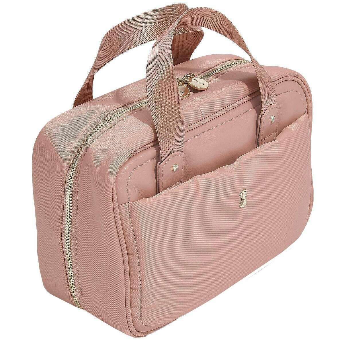 • 4 sections, mécanisme de pliage et zip, 2 poignées de transport, crochet suspendu en haut, compartiments multiples, poches zippées, boucles élastiques, section amovible, miroir compact inclus