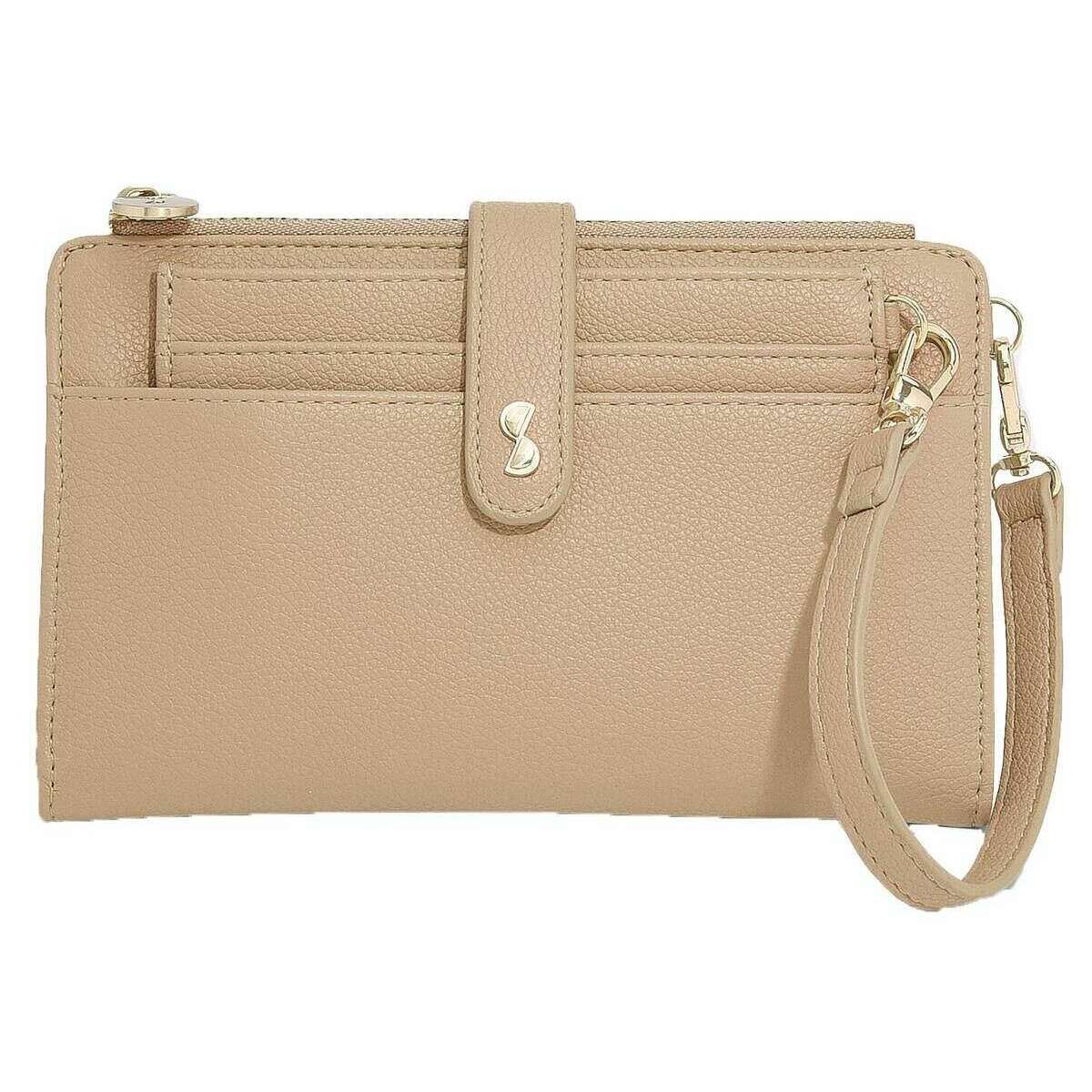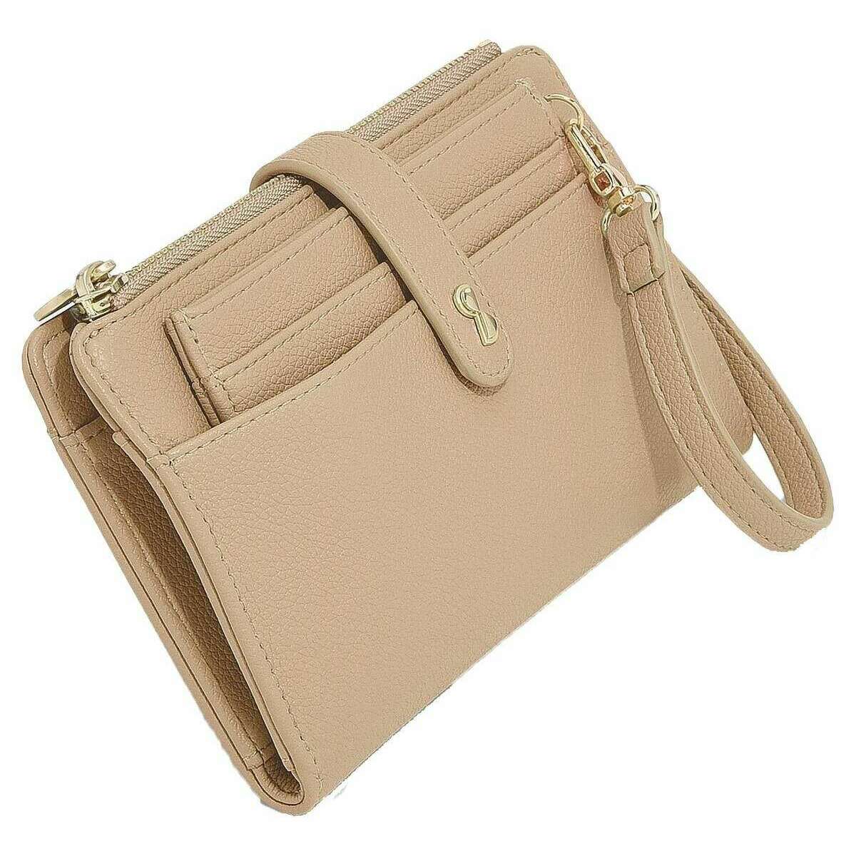 • Poche externe pour téléphone , 6 emplacements pour cartes , Miroir cosmétique , Poche à monnaie zippée amovible , Dragonne amovible , Fermeture à bouton-pression