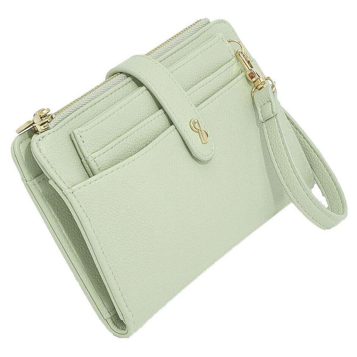 • Poche externe pour téléphone , 6 emplacements pour cartes , Miroir cosmétique , Poche à monnaie zippée amovible , Dragonne amovible , Fermeture à bouton-pression