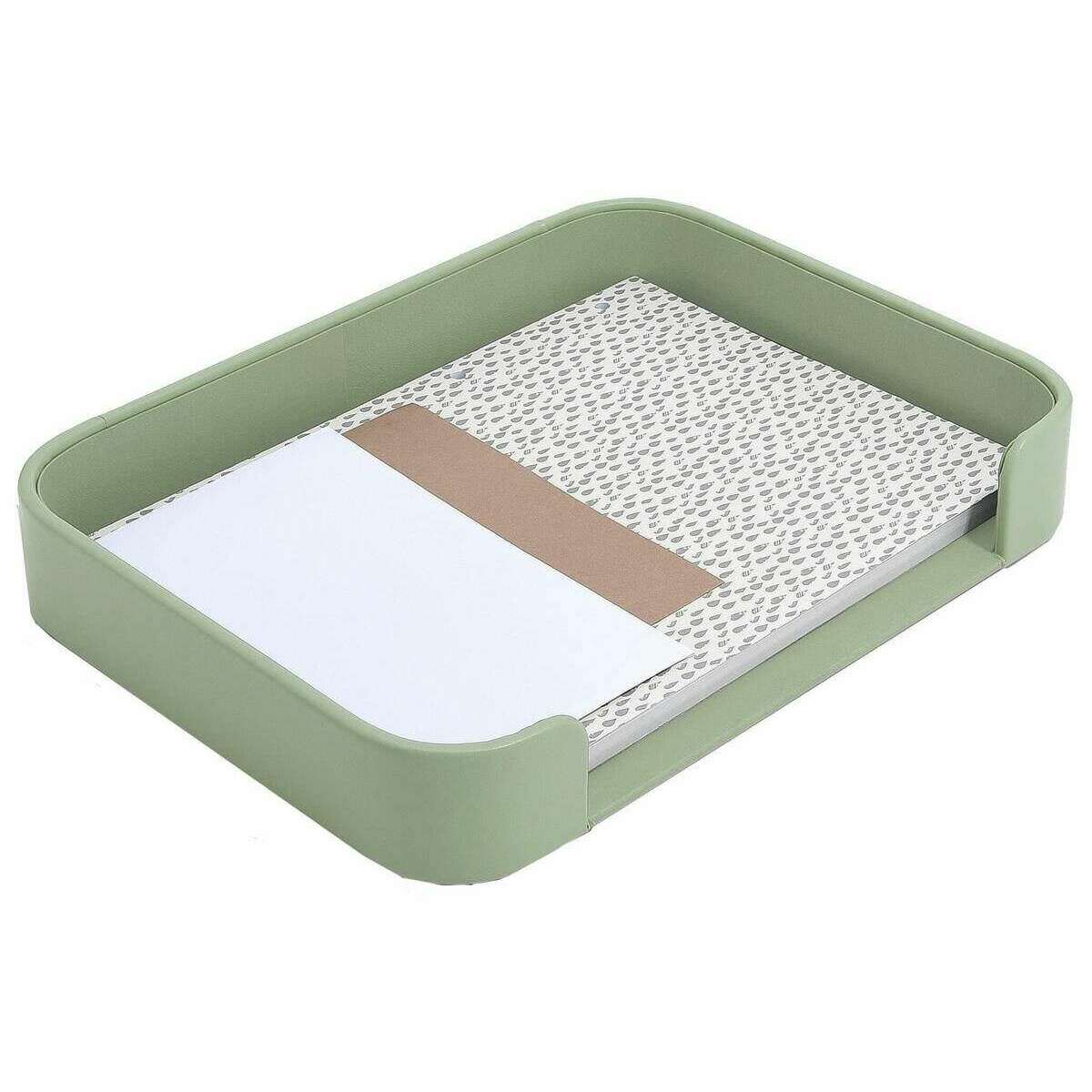 Ce bac à courrier pour femme est fabriqué en simili cuir, de couleur verte et provient de la marque Stackers. Il mesure 5 cm (hauteur) x 32,5 cm (largeur) x 24,5 cm (profondeur). Tous les accessoires de bureau sont livrés avec un emballage empileur. Le bac à courrier Stackers - Vert Pistache présente un magnifique design vert. Ce bac à courrier est parfait pour ranger du papier ou de la papeterie et peut être conservé sur un bureau ou dans un tiroir !