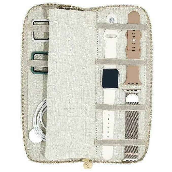 Cet organisateur de montres intelligents pour femmes par les stackers est fabriqué à partir de faux cuir et de lin et est présenté en beige. Toutes les boîtes à bijoux sont complètes dans l'emballage des piles. L'organisateur de la montre intelligente Stackers - Bége à avoine / lin vous aidera à rester soigné et à organiser, effaçant le stress d'essayer de trouver les pièces à votre montre. Avec des boucles élastiquées pour maintenir en toute sécurité des articles tels que des montres et des sangles, et des boucles supplémentaires de l'autre côté pour contenir des accessoires et des câbles de charge, ce boîtier parfaitement pratique dispose d'une fixation zippée et a été fabriqué avec des matériaux durables pour assurer un transport sûr.