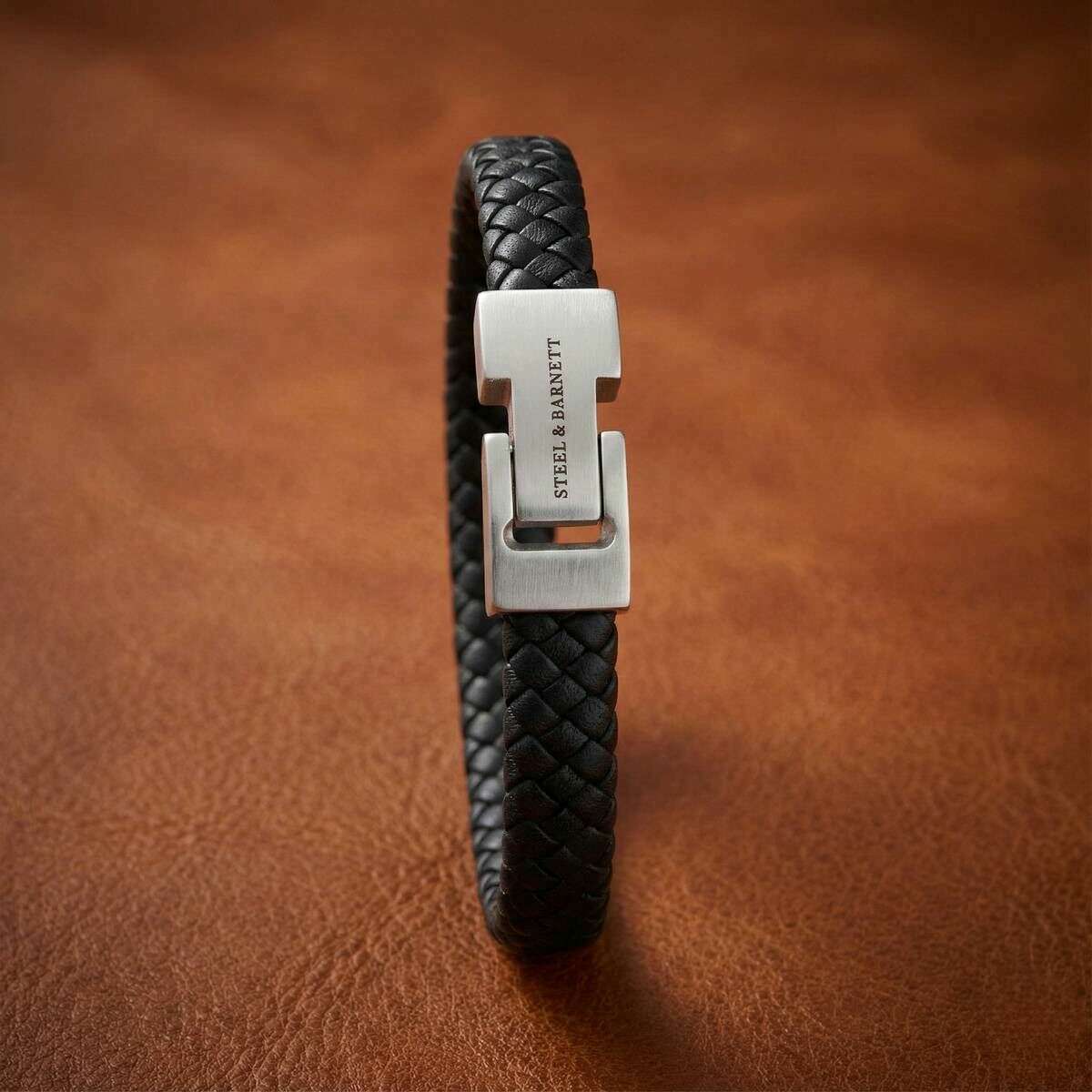 Ce bracelet en cuir tressé Archie pour homme de la marque Steel & Barnett est composé à 100 % de cuir nappa et d'acier inoxydable et est présenté en noir. Tous les bracelets sont livrés avec un emballage en acier et Barnett. Le bracelet en cuir tressé Steel & Barnett Archie - Noir incarne l'équilibre parfait entre simplicité et élégance. Fabriqué à la main à partir de cuir Nappa véritable, son bracelet lisse de 8 mm offre une esthétique épurée et minimaliste adaptée à tous les styles. Le design est rehaussé par un fermoir en argent brossé signature, finement gravé du logo STEEL & BARNETT, offrant une subtile touche de distinction. Conçu pour la longévité, le bracelet est doté d'un fermoir en acier inoxydable 316L de haute qualité, célèbre pour sa durabilité et sa résistance à la corrosion. Sa fermeture magnétique garantit un port sans effort, offrant un ajustement sûr et confortable tout au long de la journée. Polyvalent et raffiné, l'Archie passe facilement des occasions formelles aux décors décontractés, ajoutant une couche de sophistication discrète à chaque tenue.