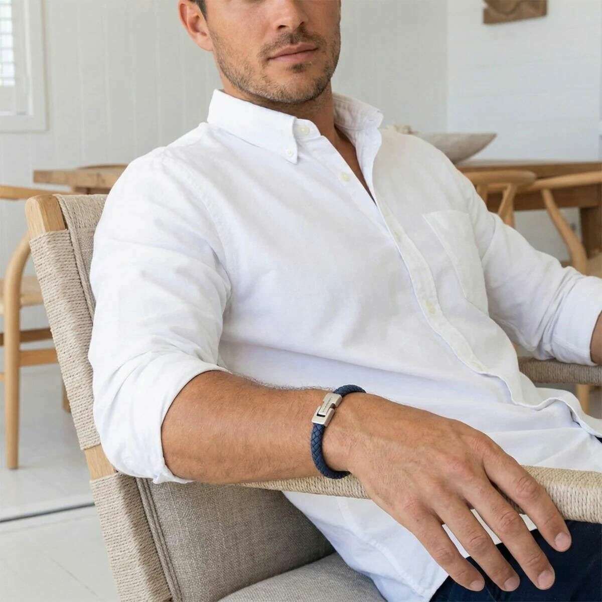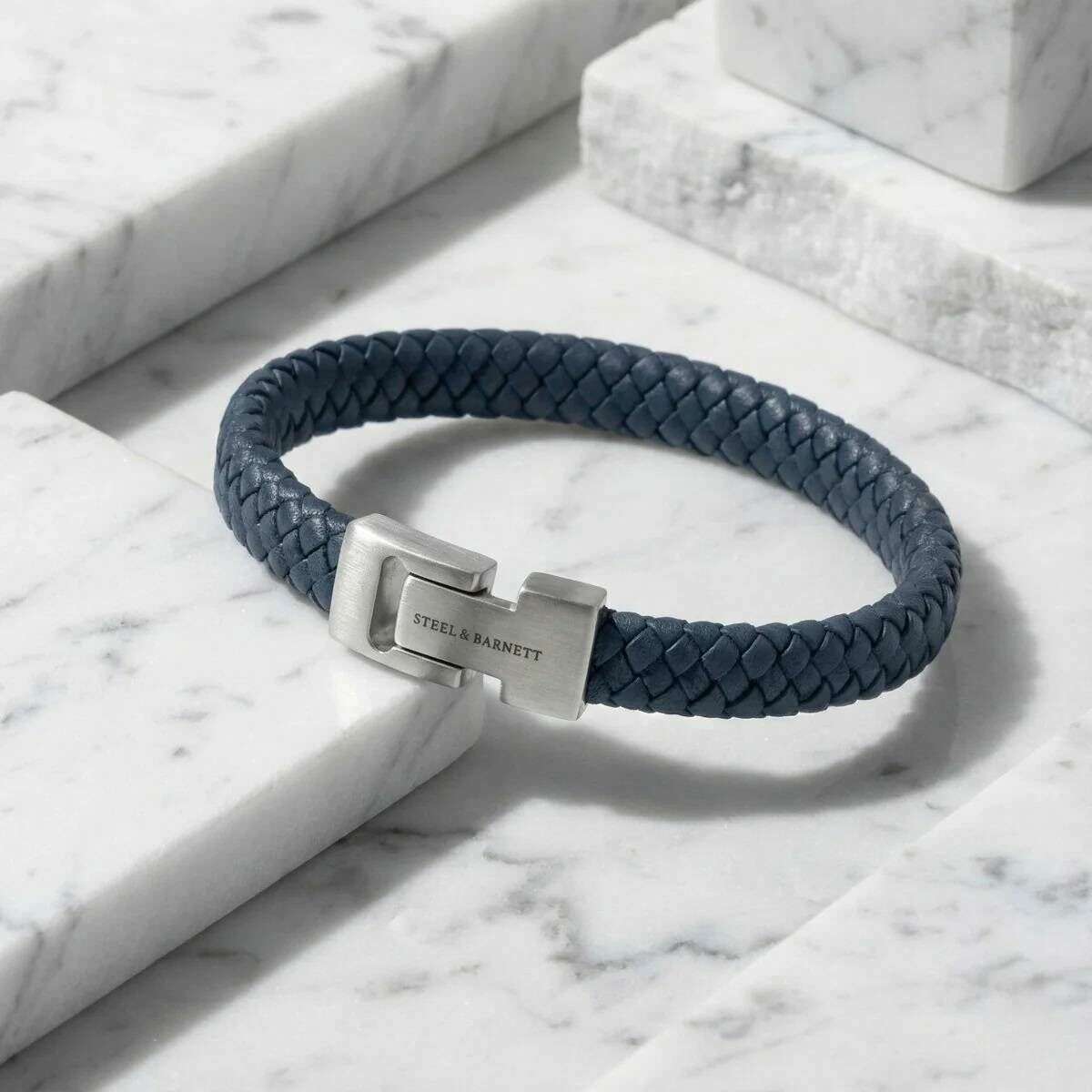 Ce bracelet en cuir tressé Archie pour homme a été fabriqué à 100 % en cuir nappa et en acier inoxydable, de couleur bleue et est de la marque Steel & Barnett. Tous les bracelets sont livrés avec un emballage en acier et Barnett. Le bracelet en cuir tressé Steel & Barnett Archie - Bleu Jeans incarne l'équilibre parfait entre simplicité et élégance. Fabriqué à la main à partir de cuir Nappa véritable, son bracelet lisse de 8 mm offre une esthétique épurée et minimaliste adaptée à tous les styles. Le design est rehaussé par un fermoir en argent brossé signature, finement gravé du logo STEEL & BARNETT, offrant une subtile touche de distinction. Conçu pour la longévité, le bracelet est doté d'un fermoir en acier inoxydable 316L de haute qualité, célèbre pour sa durabilité et sa résistance à la corrosion. Sa fermeture magnétique garantit un port sans effort, offrant un ajustement sûr et confortable tout au long de la journée. Polyvalent et raffiné, l'Archie passe facilement des occasions formelles aux décors décontractés, ajoutant une couche de sophistication discrète à chaque tenue.