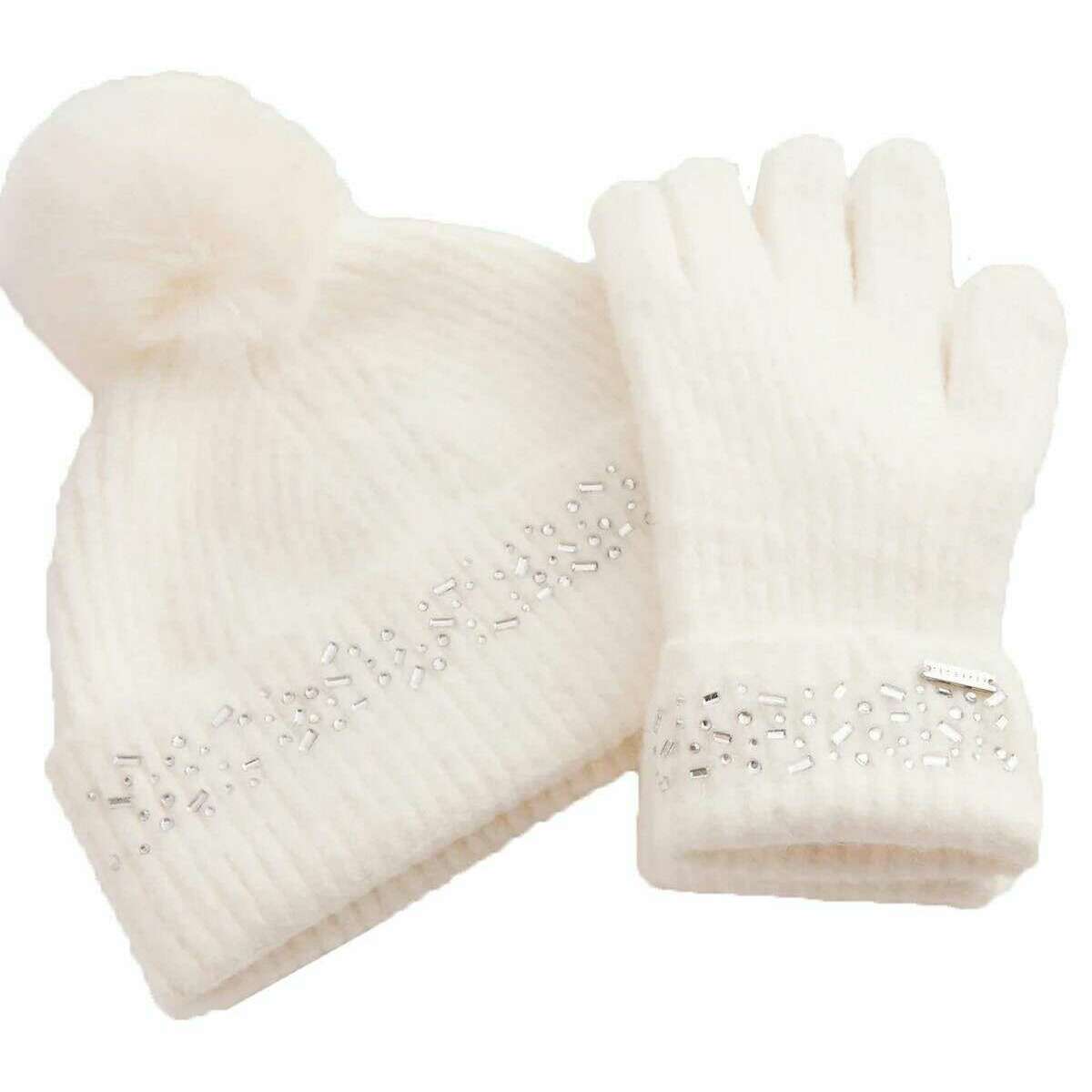 Ted Baker Keriis Rhingestone Tricoted Hat and Gants Set - Crème
